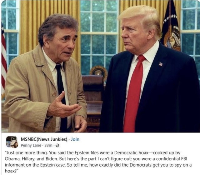 And he didn’t say the Epstein files were a hoax. He said the so called list was a hoax. At least that’s what I thought.Peter Falk has been dead since 2011