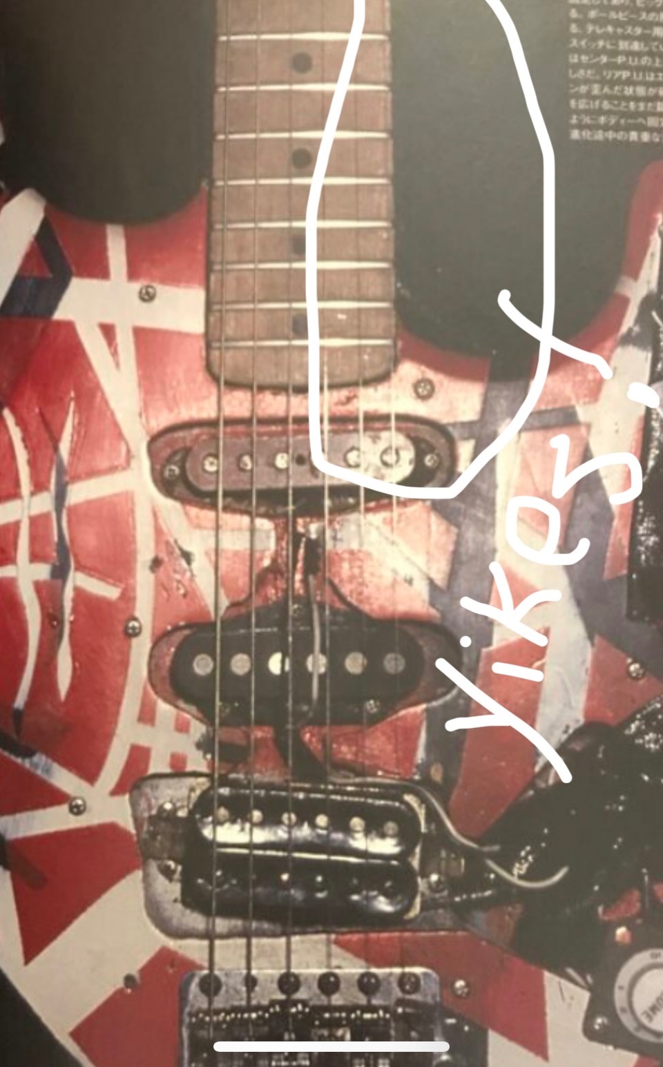 Yeah you’re right it has a mighty mite in the neck. That’s weird because in the rwtd video clip he has 2 black pafs. I think that after cutting the shark he began to try humbuckers and was first experimenting with the neck ? He said cutting it made it lose its tone. Who knows.Amp-chaser the photo you posted in the beginning of this thread with Ed’s Destroyer from the 1978 japan magazine take a good look at the pole pieces of the neck black pickup and the chrome covered bridge pickup look at the pole pieces