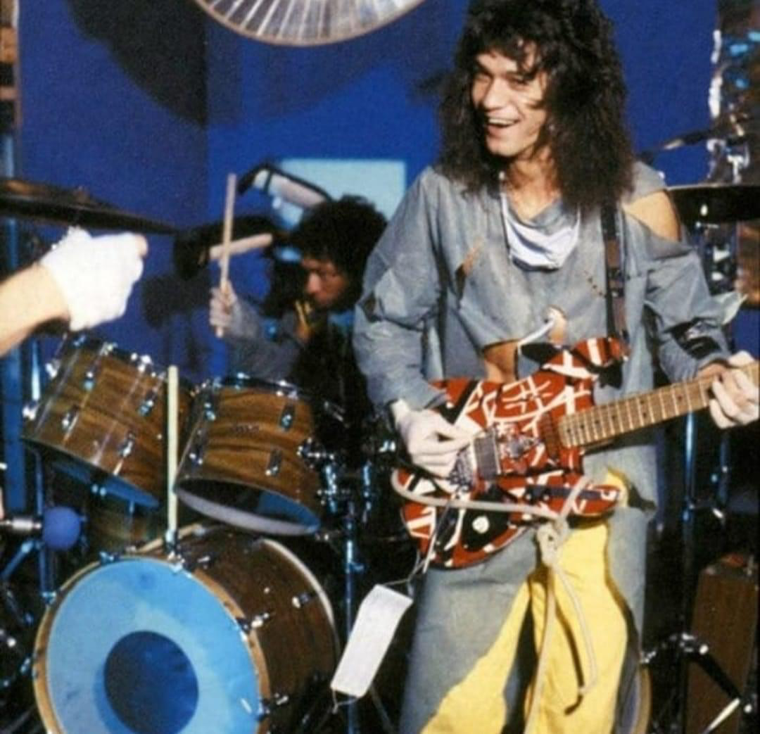 “On a recent return flight from Japan, Eddie’s original 100-watt Marshall amps were lost in air freight, and he’s replaced them with Music Mans, Laneys, and new Marshalls.”