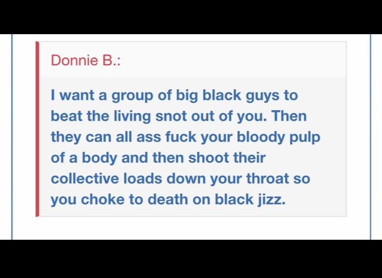 Wow, this Donnie guy seems like a real racist asshole POS!Not even close, Chuckles?