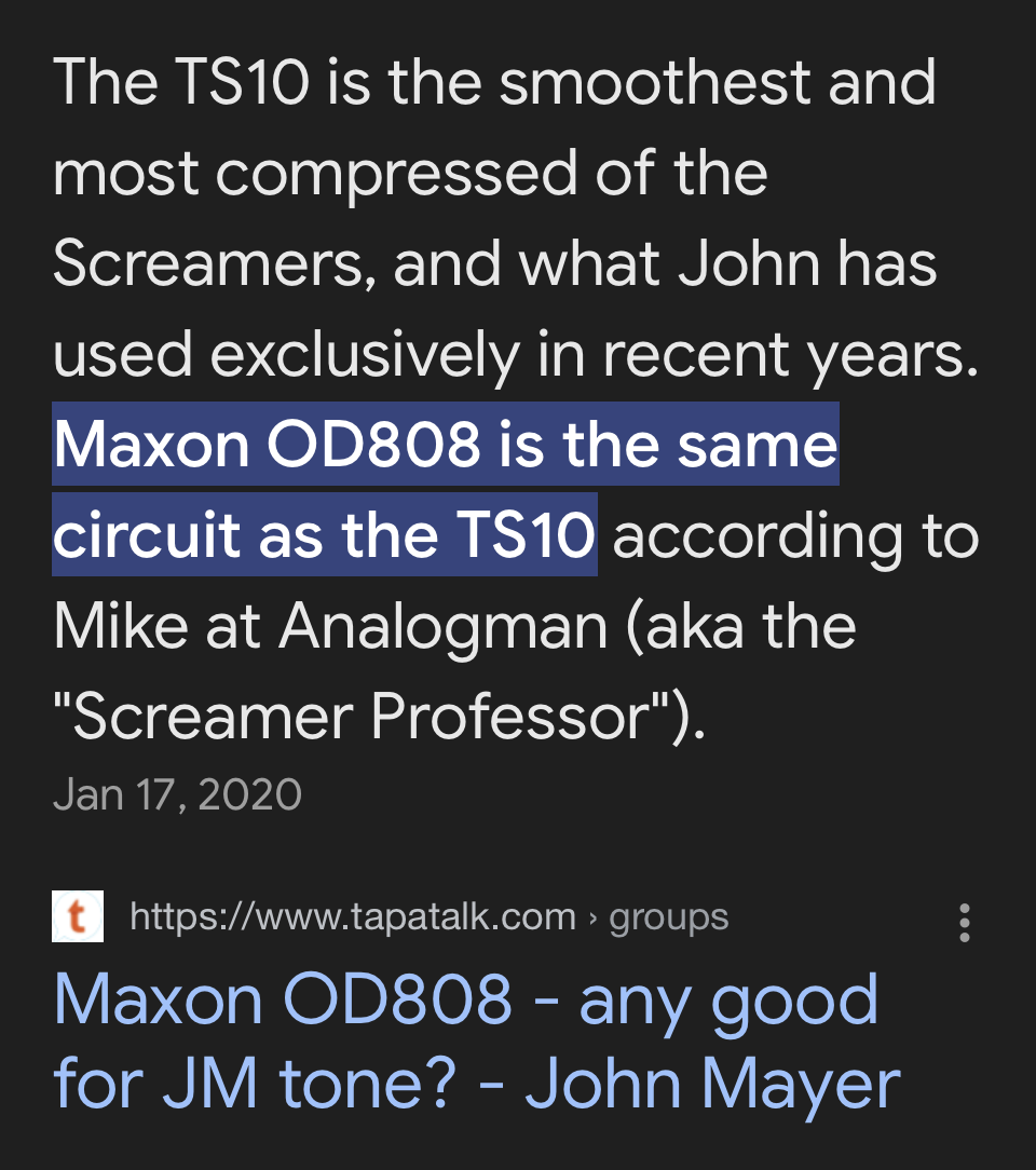 I bought a TS808 and didn’t gel with it at all. Tried the JHS Bonzai and didn’t gel with it either. I was gifted an SD1 for a birthday and it just worked for me.
