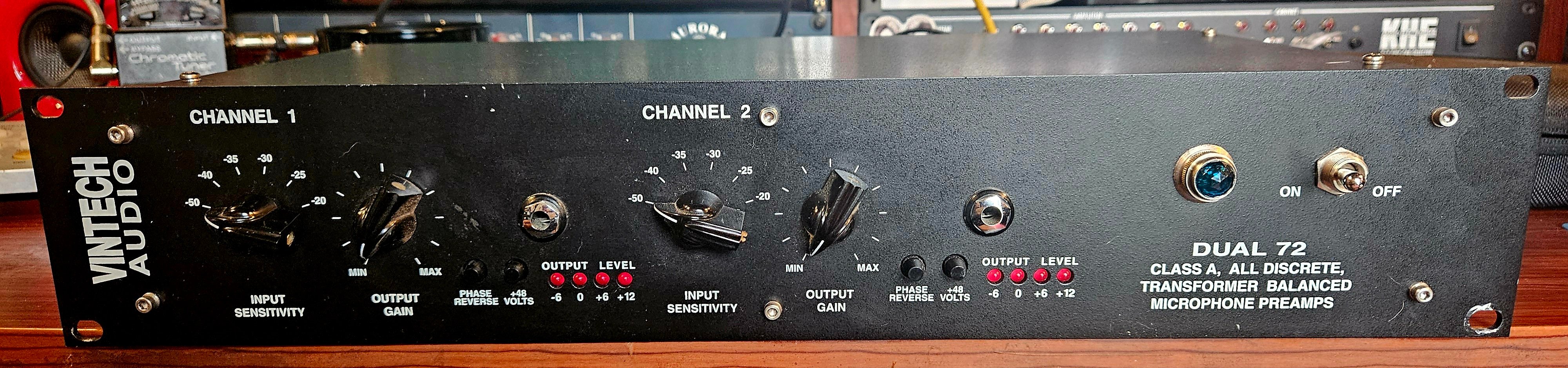 Killer mic pre, works as it should. Not interested in trades. Questions? The Vintech Audio "Dual 72" is a two channel class A, all discrete, transformer balanced microphone preamplifier. It is built with the same basic circuit design and components as the classic Neve 1272 module