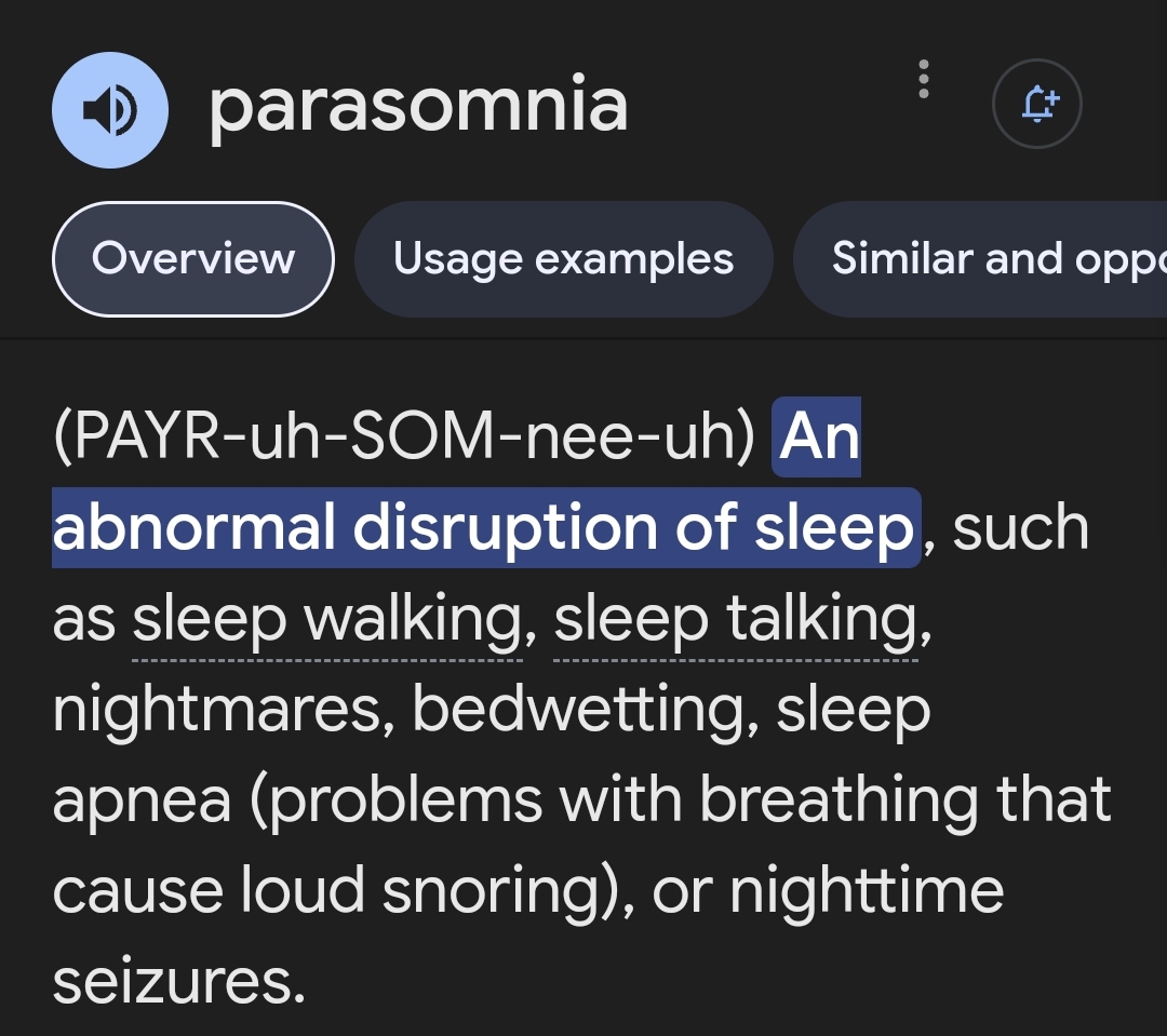 now i'm not a scientist....but i thought parasomnia is just a reference to things that human bodies do while asleep?