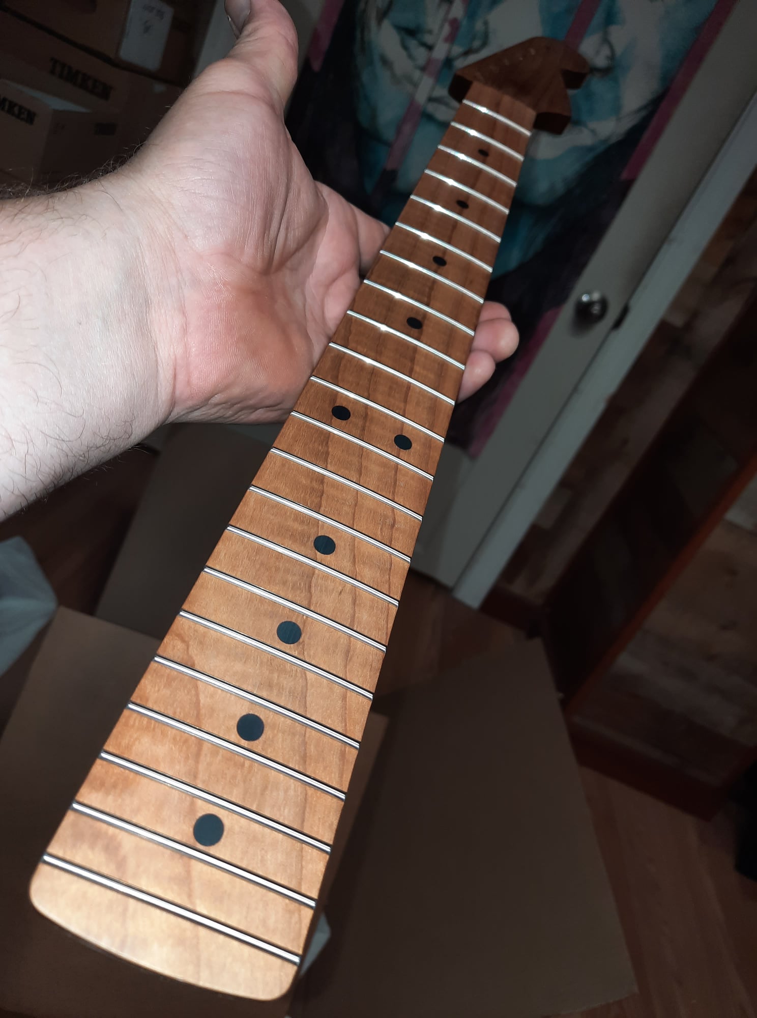 Compound radius neck ( roasted maple with exceptional striping ) stainless 6105 frets