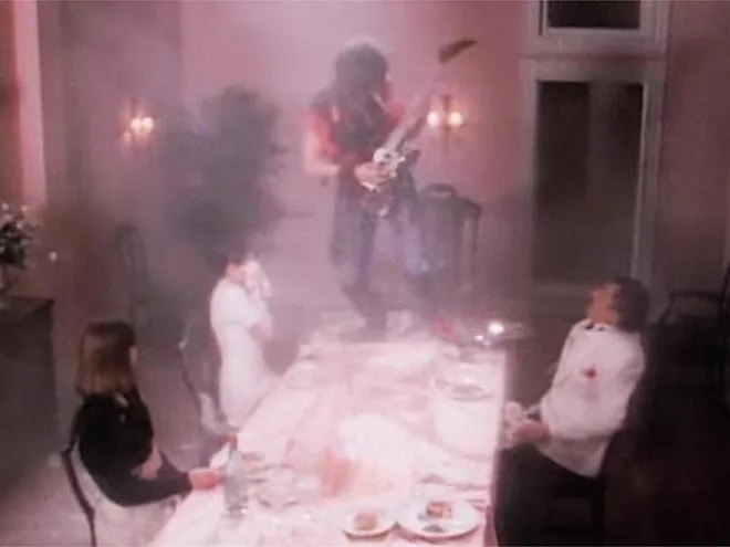 Have you ever noticed in the round and round video Warrens skull guitar has a pointy head stock?