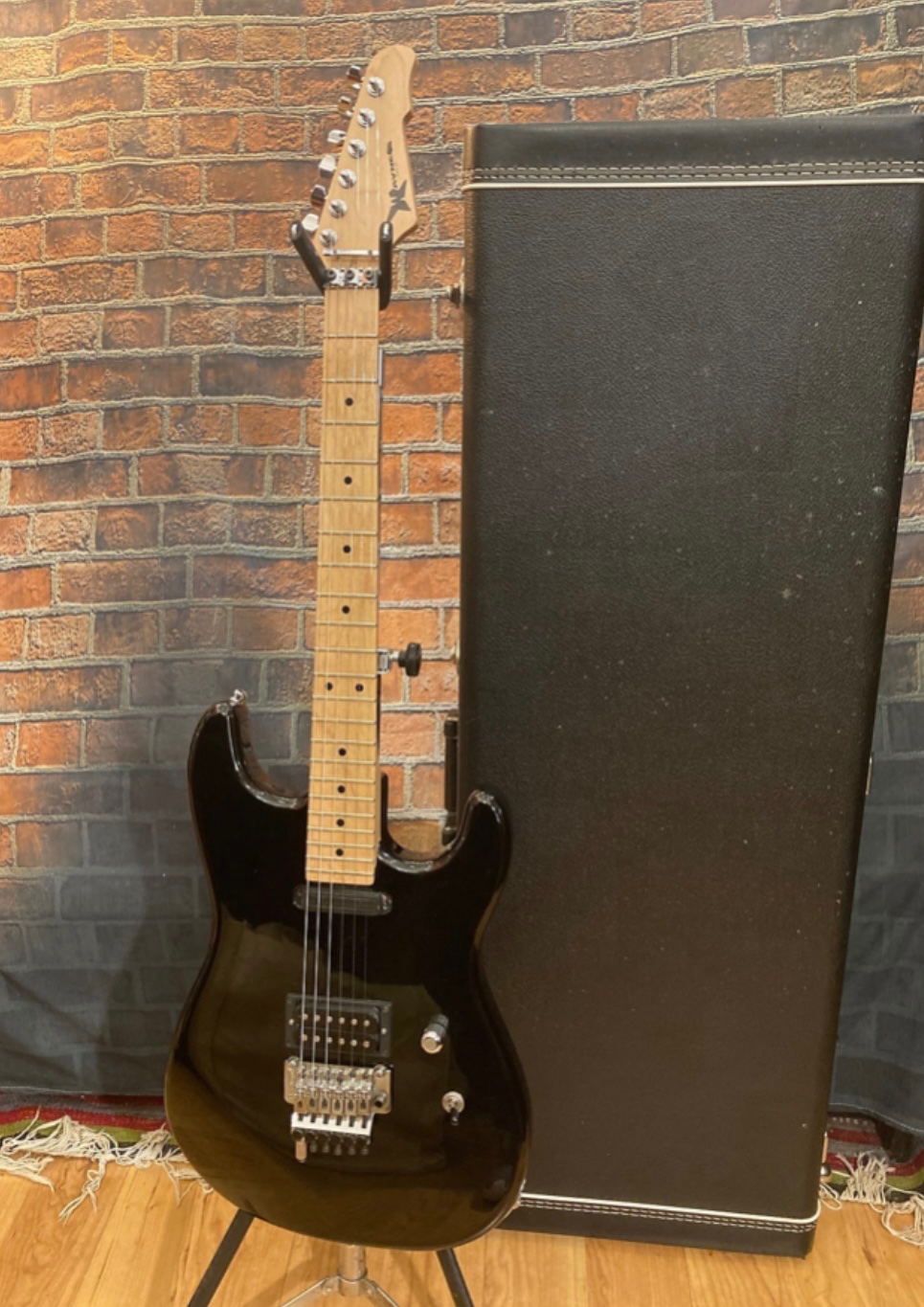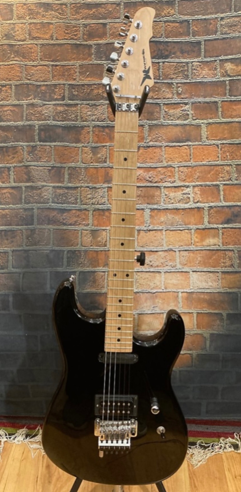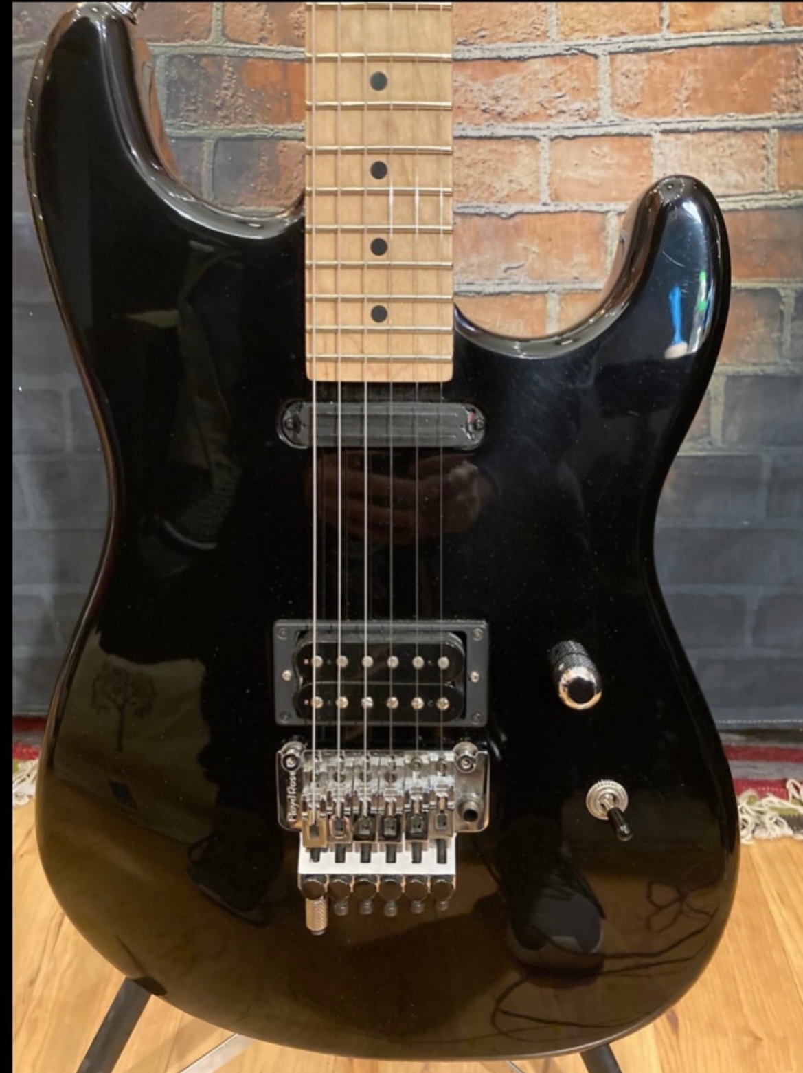 In overall good shape, with very little fret wear & typical cosmetic swirls & dings for a black guitar.