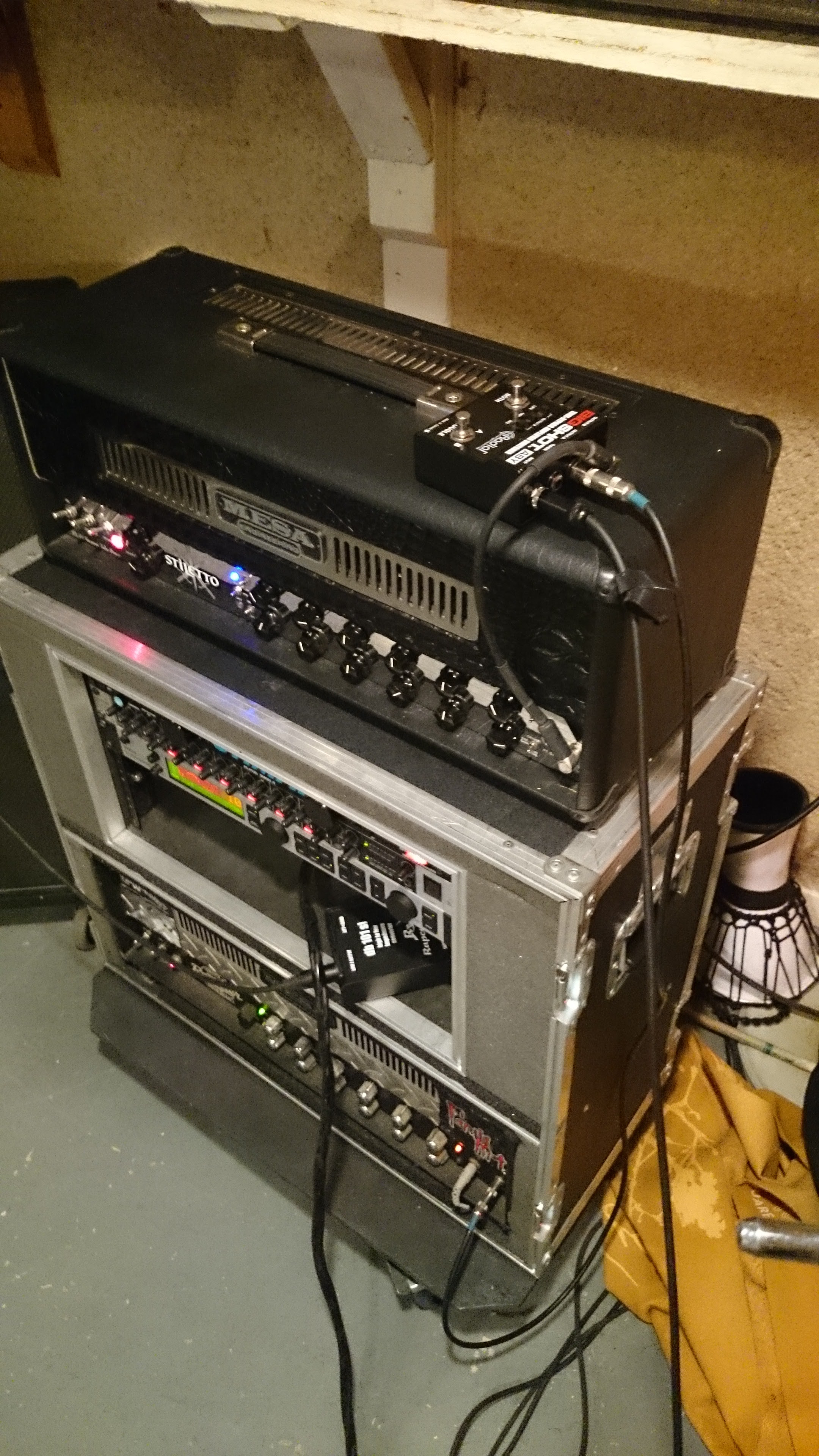 When recording our second album, Dive Into the Great Blue Waffle, I wanted to add my Stiletto Trident into the mix with my guitarists Triple Rectifier. At the time, he was using a TC Electronic G Major in the loop for effects, and channel switching. Since the G Major is stereo, we hooked both heads up into G Major, and back to both amps into their own cabs. What we didn't know was that the G Major wasn't set up for true stereo, and both amps were summed to mono through the effects and back to both amps. The end was a uniquely blended mono signal sent to both amps. We didn't realize until in the studio that both captures were identical.