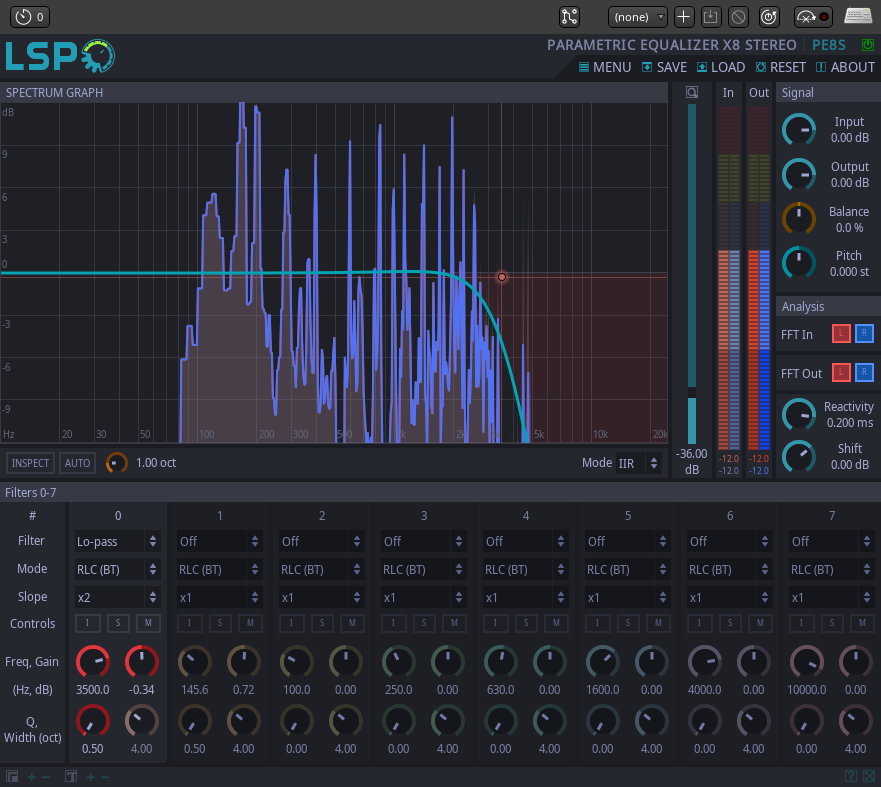 It applies an overall EQ curve that looks a bit like this to your signal:Thanks for your info, it is helpful. Can you explain this to me in layman's terms? What is the net result of "fairly aggressive low pass"?