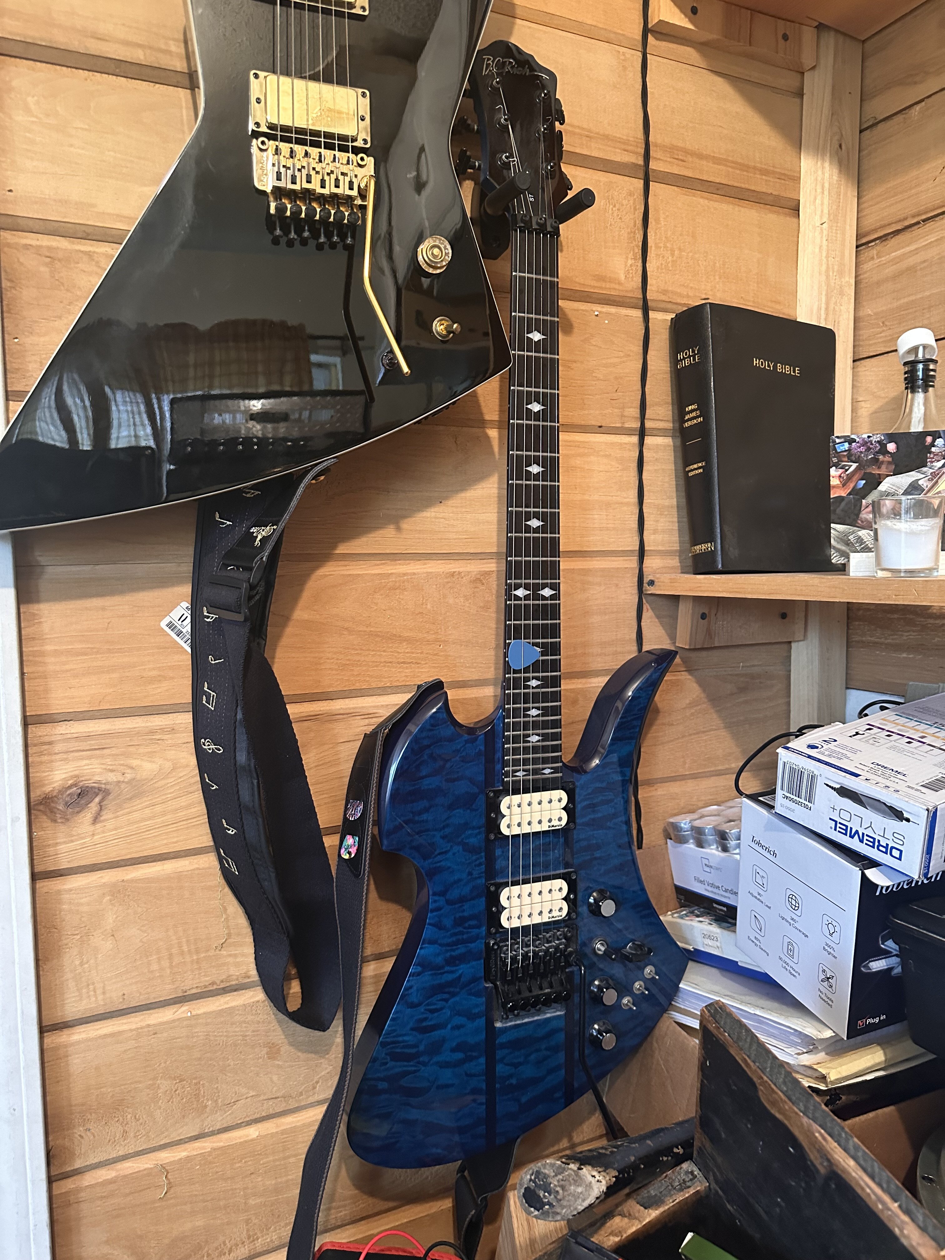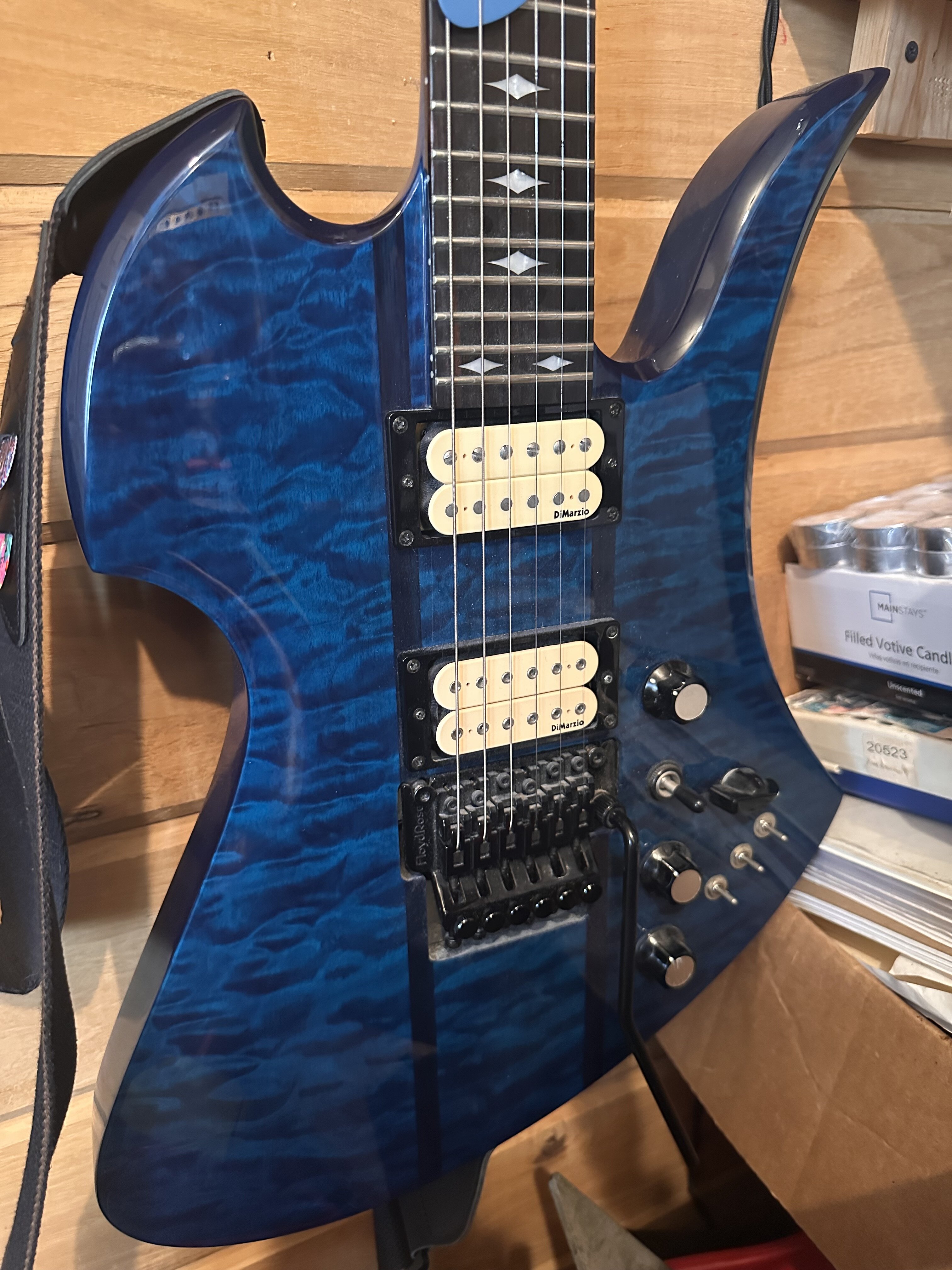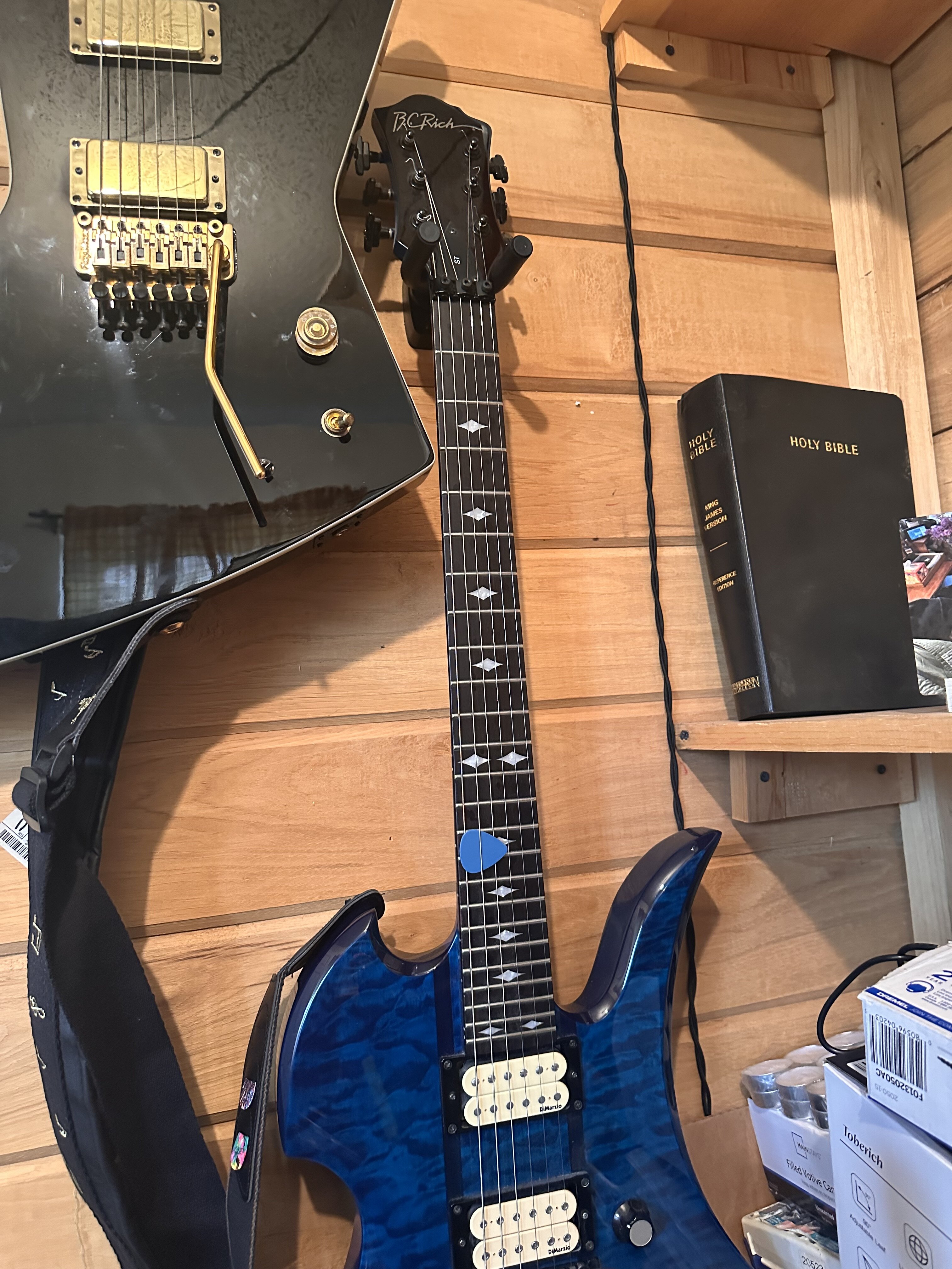 Bc rich neck thru st…artisan I believe…badass…. My first one ever….plus it has some dimarzio’s in it. Fucker showed up in tune also… so freaking awesome…thanks Alund…you’re my road dog bro….for reeelz…
