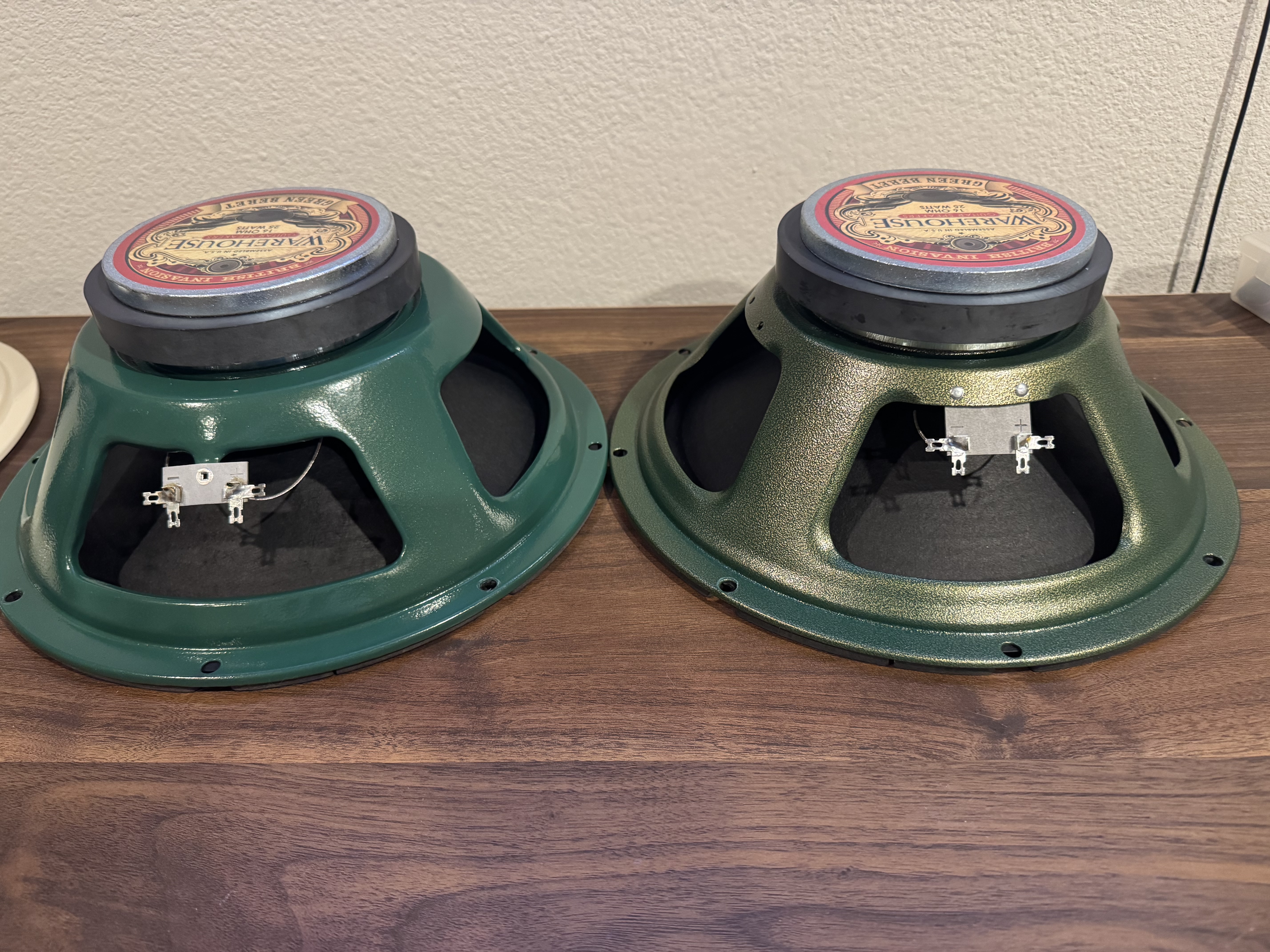 One direct from WGS and another off eBay from a retailer. They look and sound completely different. The one from eBay (left below) sounds awful and has a different basket. The one from WGS direct (right below) sounds phenomenal. The two speakers are not even remotely similar other than the appearance of the cones.