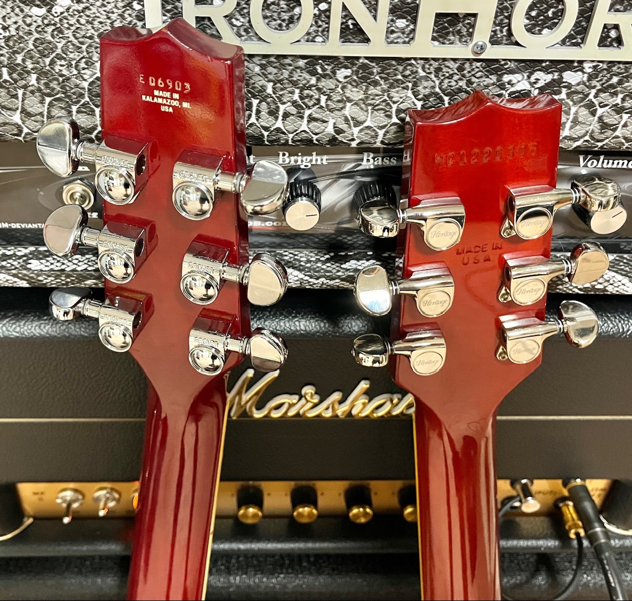 The first generation of the H150 (made in 1988 and 1989) had a body design that MIRRORED the Gibson Les Paul standard!!! It was rumored that some of the early H150s were actually built with leftover Gibson bodies from when Gibson left Kalamazoo in 1984, that were bought at the auction, bought by the original Heritage Guitar founders.