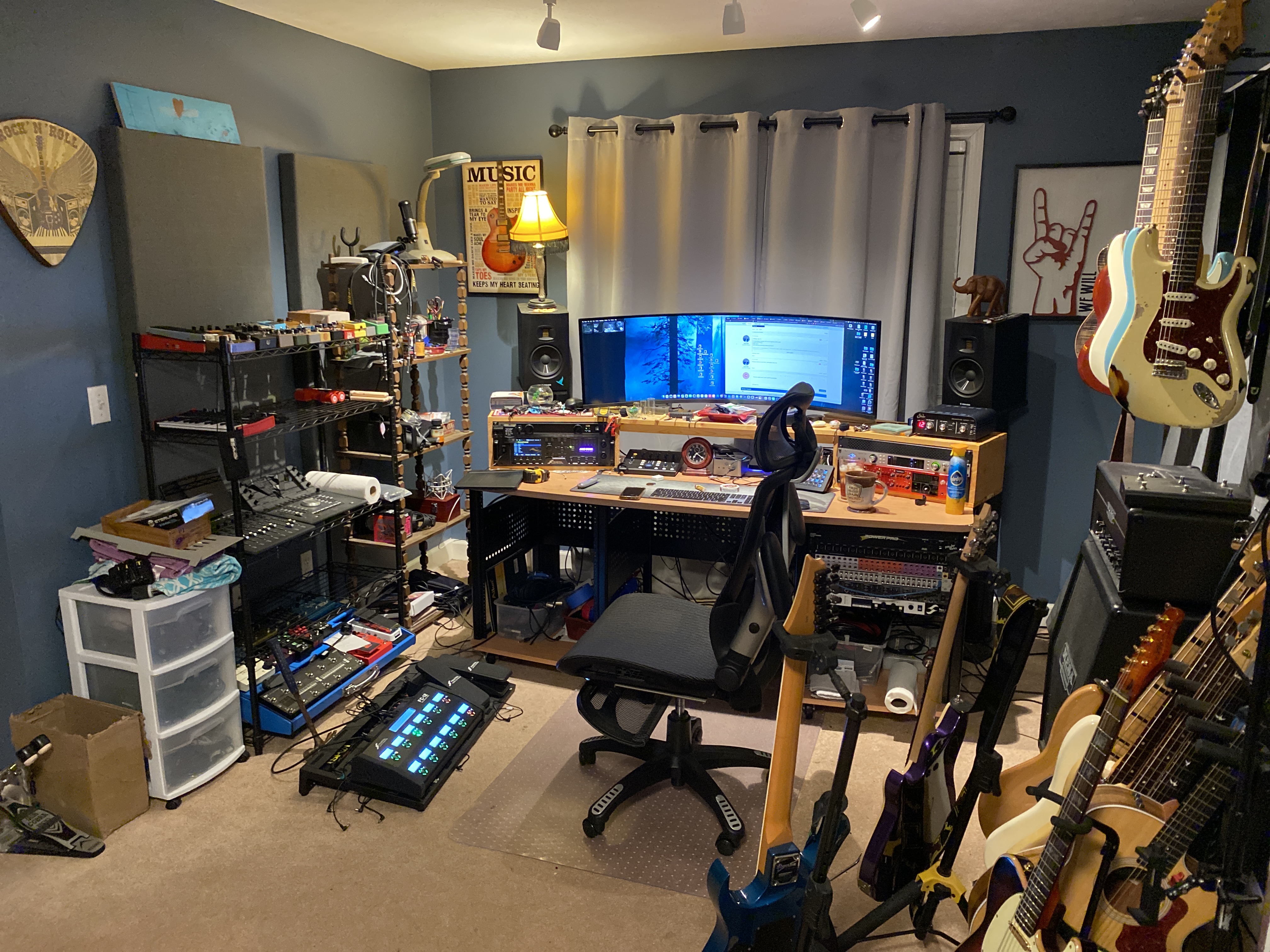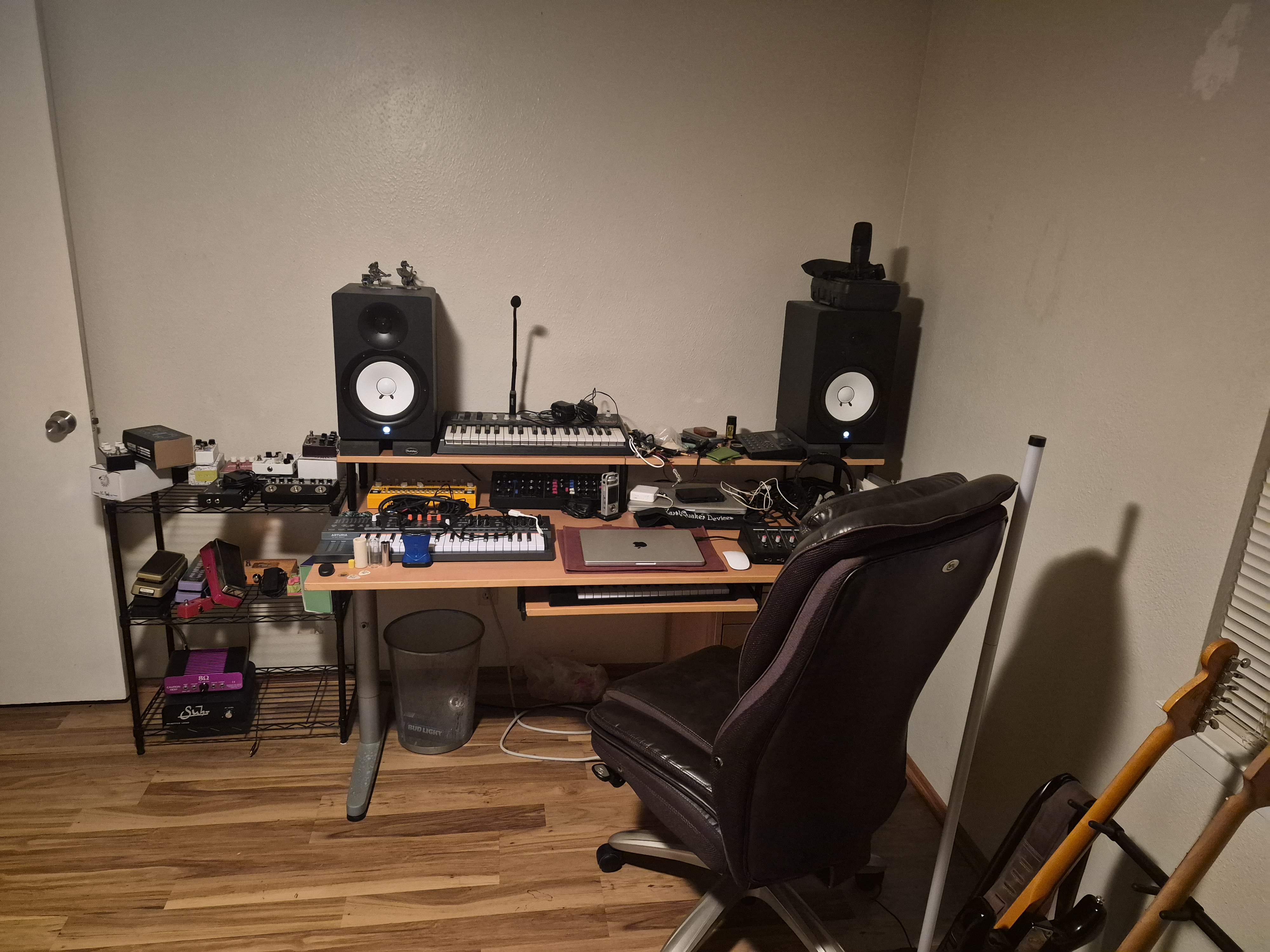 What are y’all using to store stuff like unused pedals, mics, other things that you want to keep accessible but out of the way when not in use?