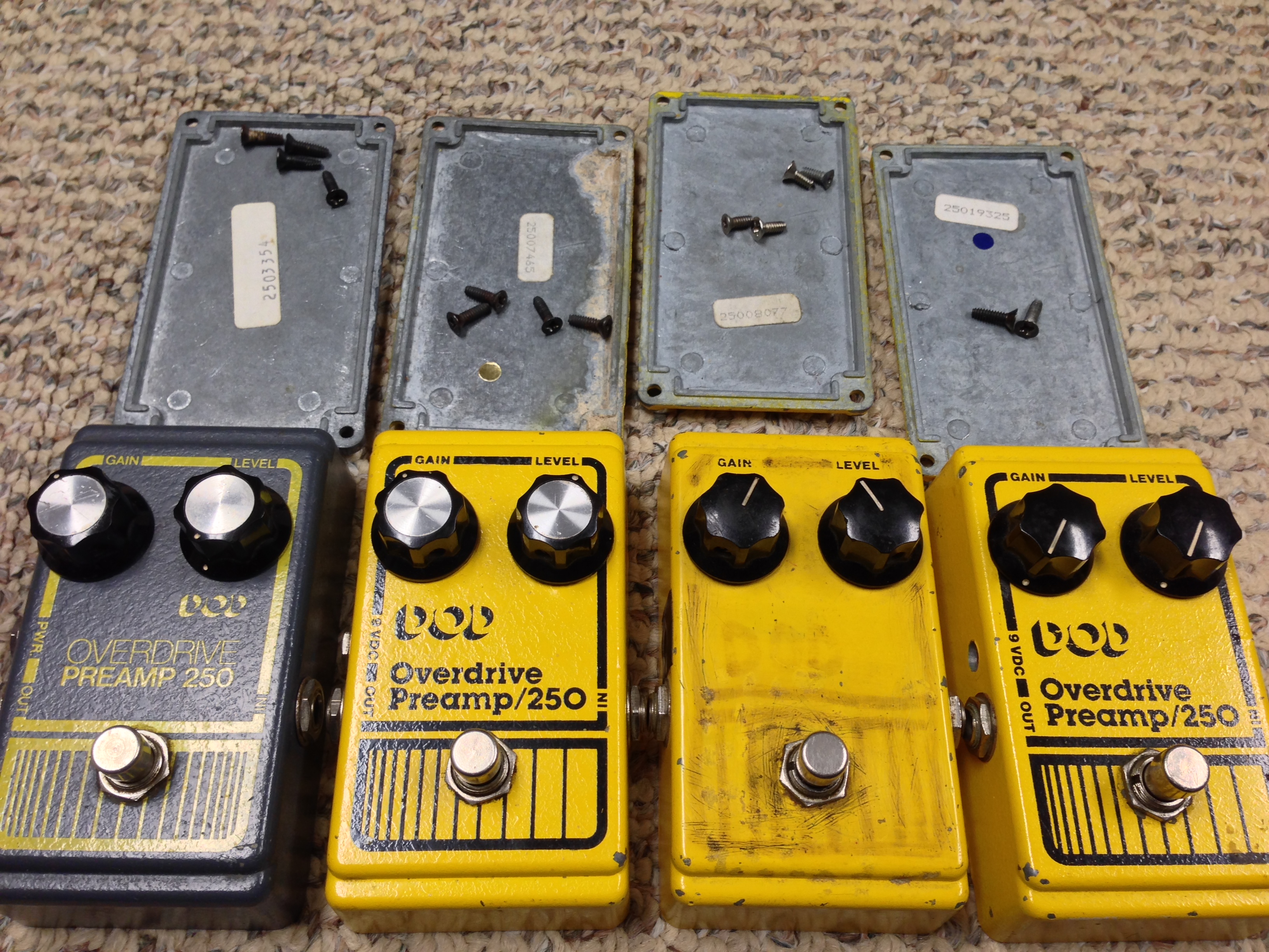 After experimenting with op-amps, the greybox uses LM(or UA) 741CN's, that are slightly hairier in tone than the TL061CP and LF351N.