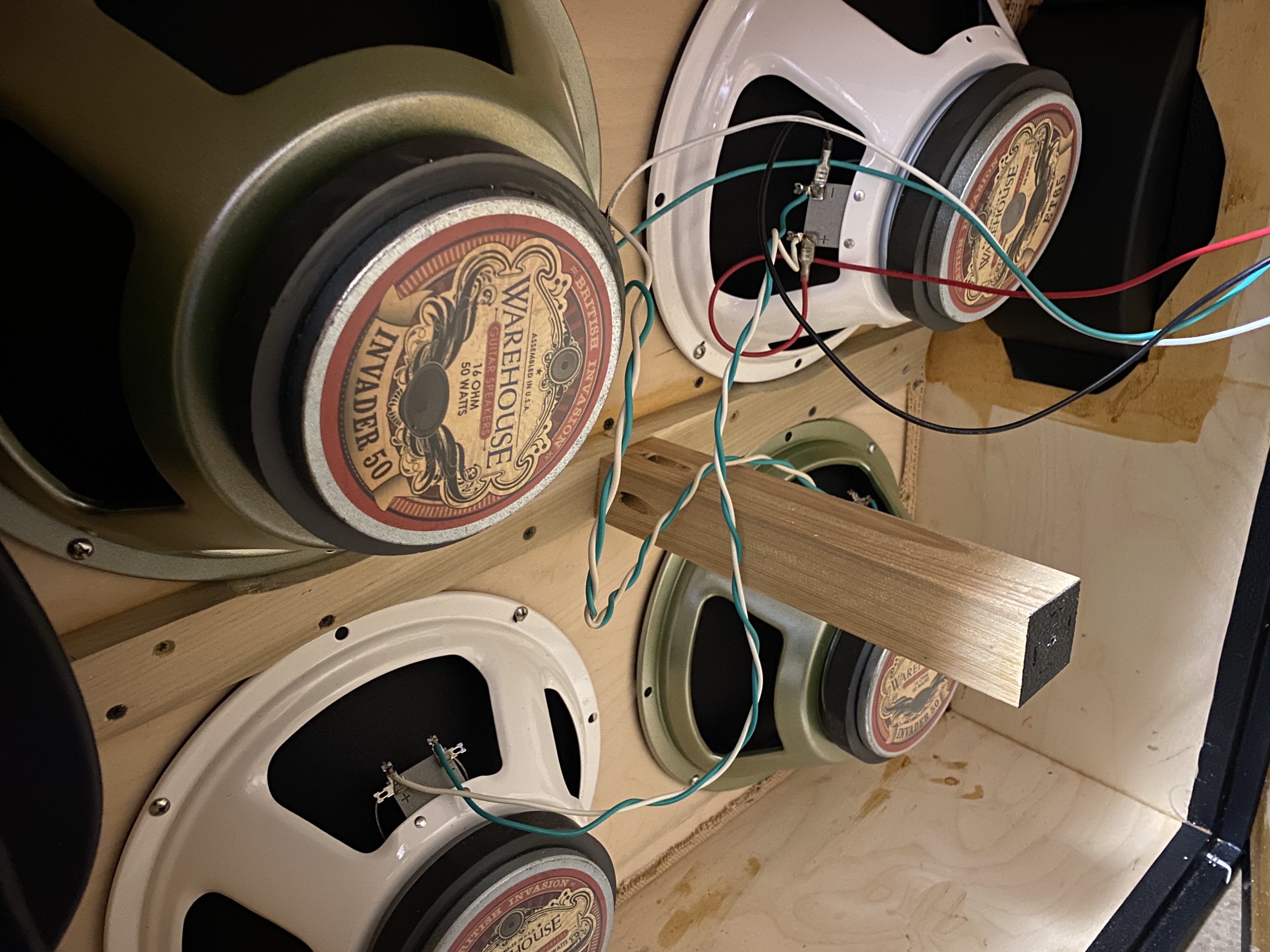 Cool riser for the 2x12. I picked up a nice 2x12 recently (with old Marshall label G12-65s), and it'd be nice to get it raised up like that.