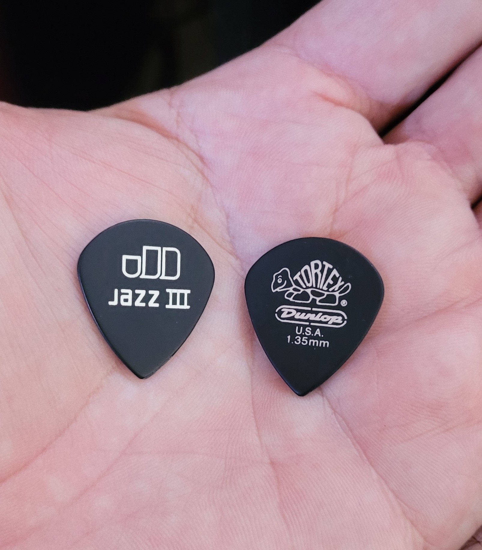 I've used the red Jazz IIIs 99.9% exclusively for about 20 years now...not sure what the thickness is, but I use them for electric, acoustic, rhythm, lead, etc. Yearrrrrrs ago I took one of my friend's black Jazz IIIs and it just set in a small box of various guitar stuff for years and broke it out the other day so I alternate between the black and red one. I get years of use out of a Jazz III so with the few I have in a pick holder in that box, I'll likely never need to buy another pack of picks lol