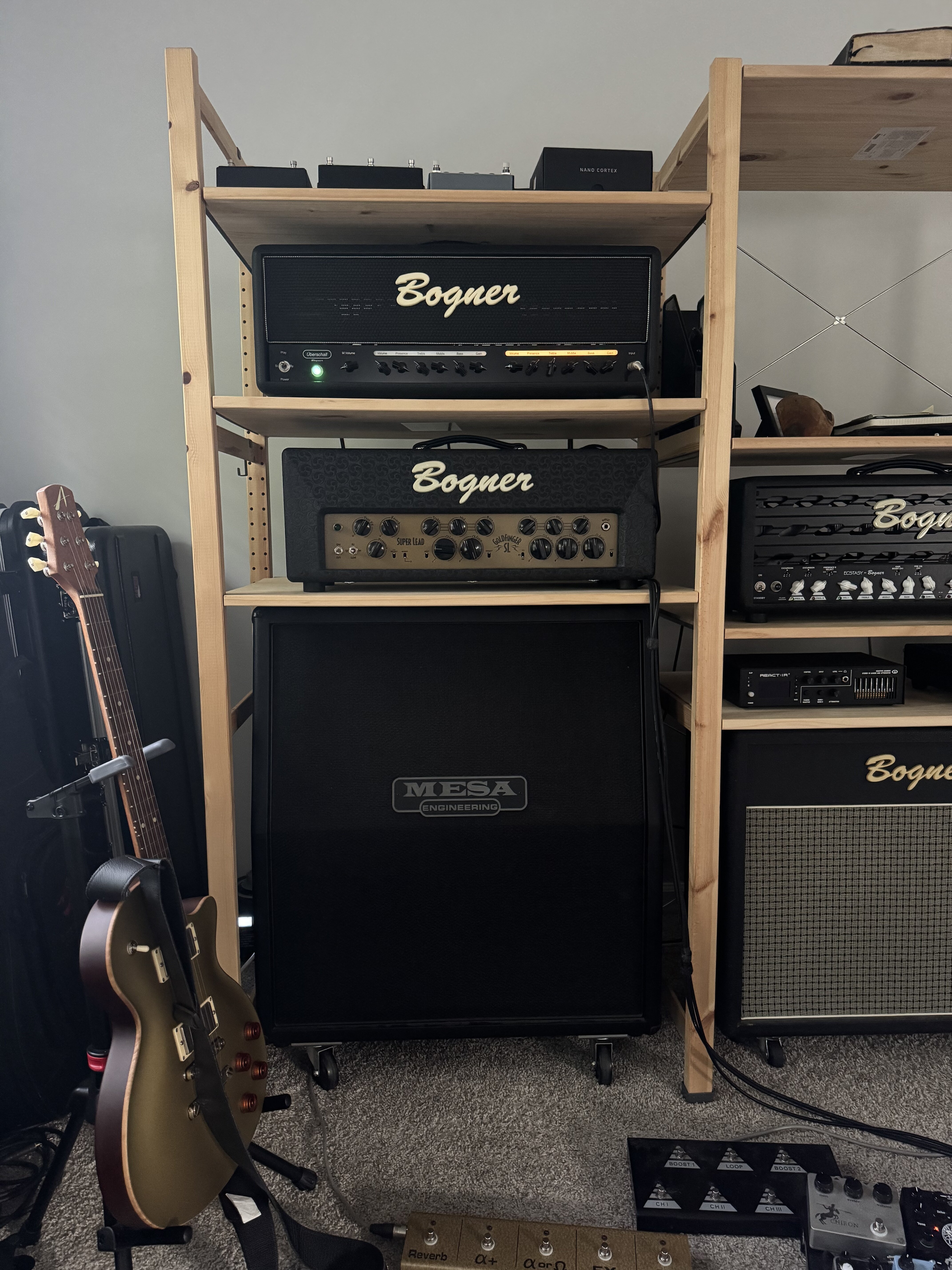 Sounds great indeed. I go back and forth as far as using two amps blended and just one amp depending on what I am playing. It is pretty addicting wall of sound for sure but sometimes a single amp works better for me. One thing I find is that with two amps is it introduces a bit more noise and also some amps sound weird together. For example If I switch to the clean channel on the JB45 it sounds really weird blending with the Plexi which ironically has loads of gain and compression when running wound up with the Powerstation. But when I use the gainier channels on the JB, it blends perfectly. If I run the plexi cleanish and use pedals for gain, it is the opposite. Same thing when I had Friedmans. Be channel on DLX and PLexi channel on JEL did not work together. Seems the tone of each amp needs to be similar in terms of compression or they dont blend well at all. The Snorkler on either channel seems to blend really well with the PLexi/powerstation. I can only imagine what the Larry/Hermansson sounds like. What do you use as as an ABY? Do you run them W/D or do use stereo fx. I go back and forth with that to, but most often Plexi dry and whatever other amp I blend in wet. I really like using the wah into one amp only to retain more thickness and chunk to the sound while still getting the wah effect. Fun stuff for sure!