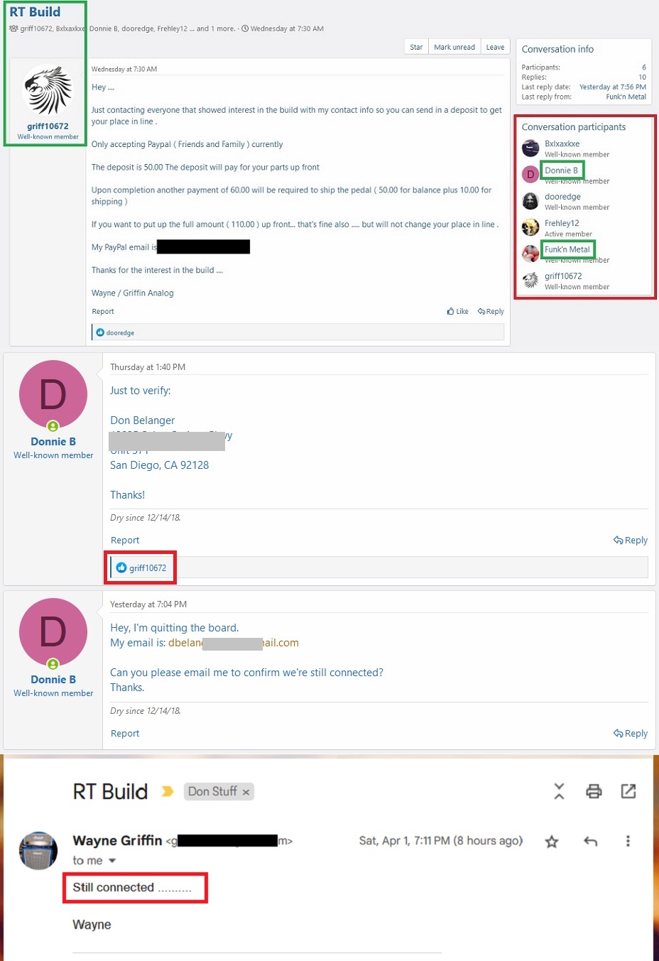 Did you know that it was a pedal builder thread when you posted your personal info?She lied when she posted here that she didn't know why I was REACHING OUT TO HER -