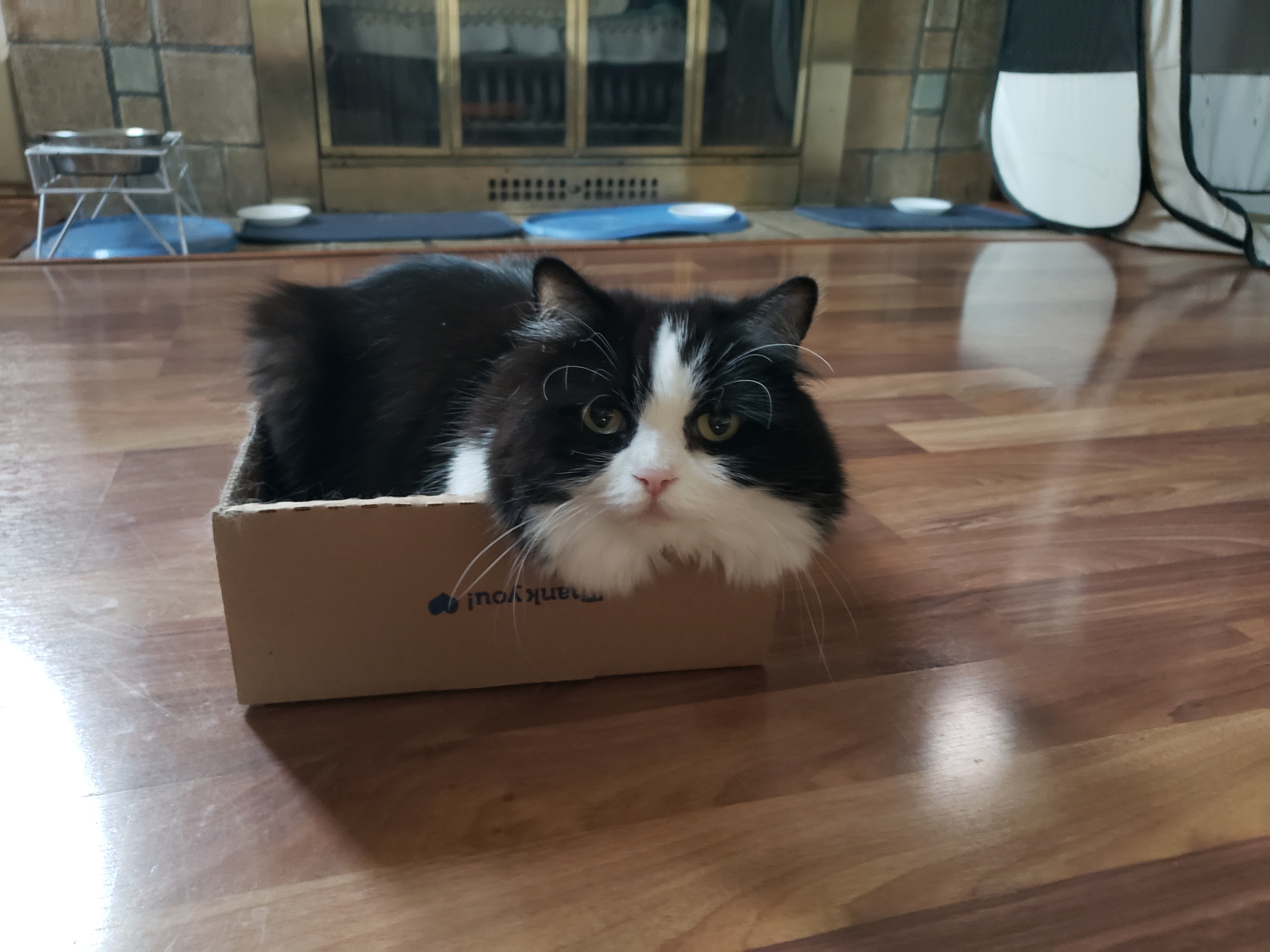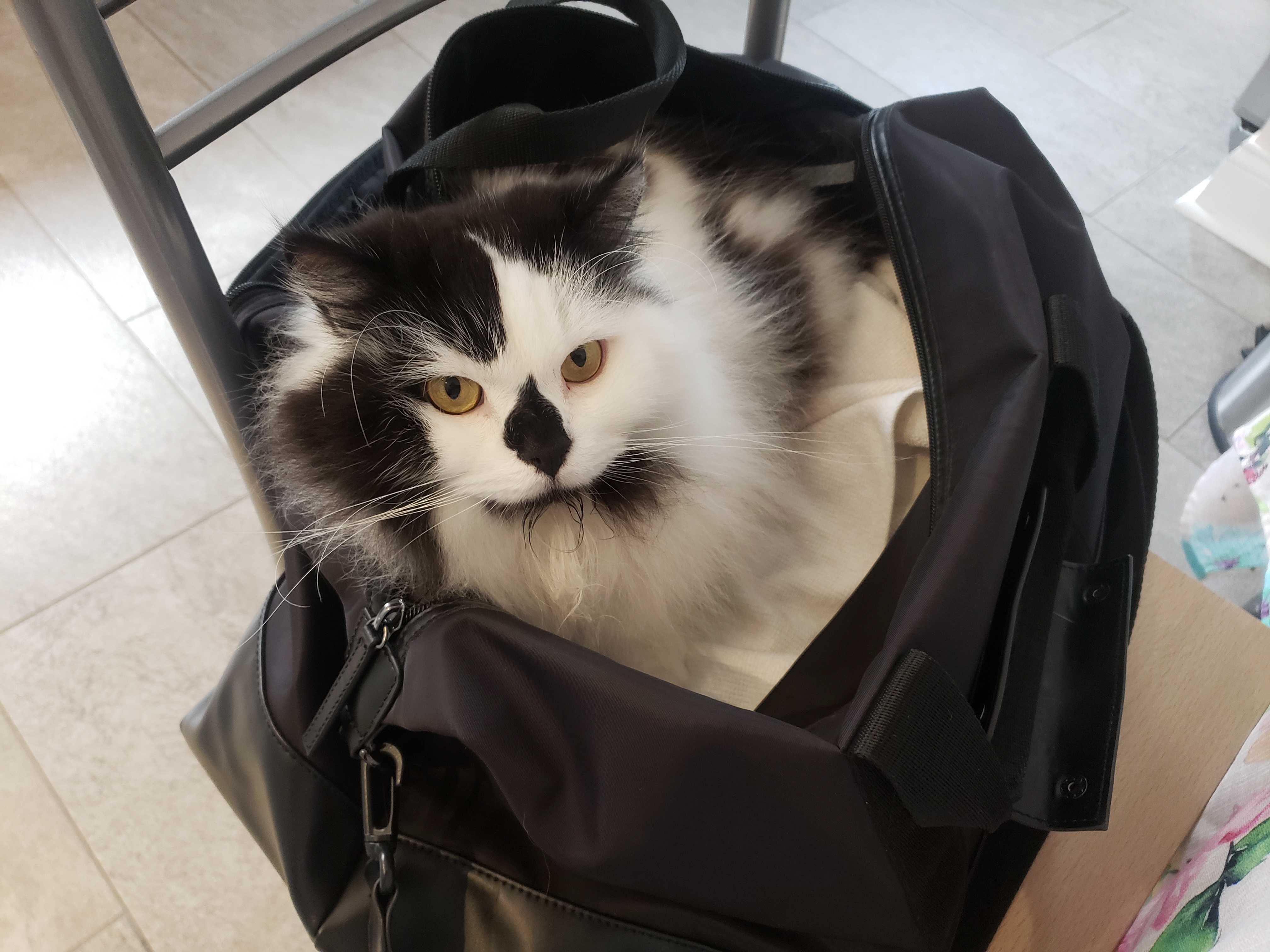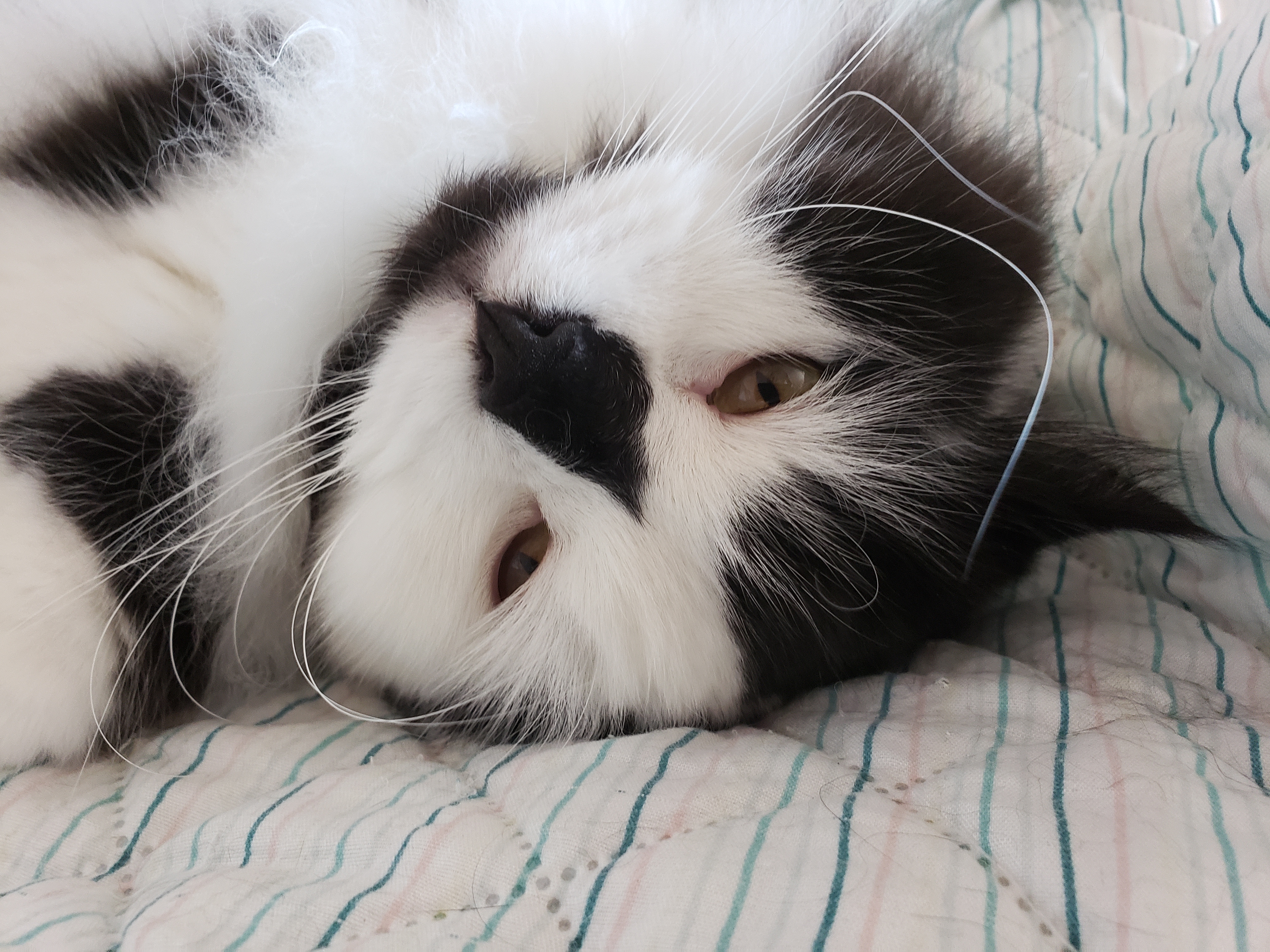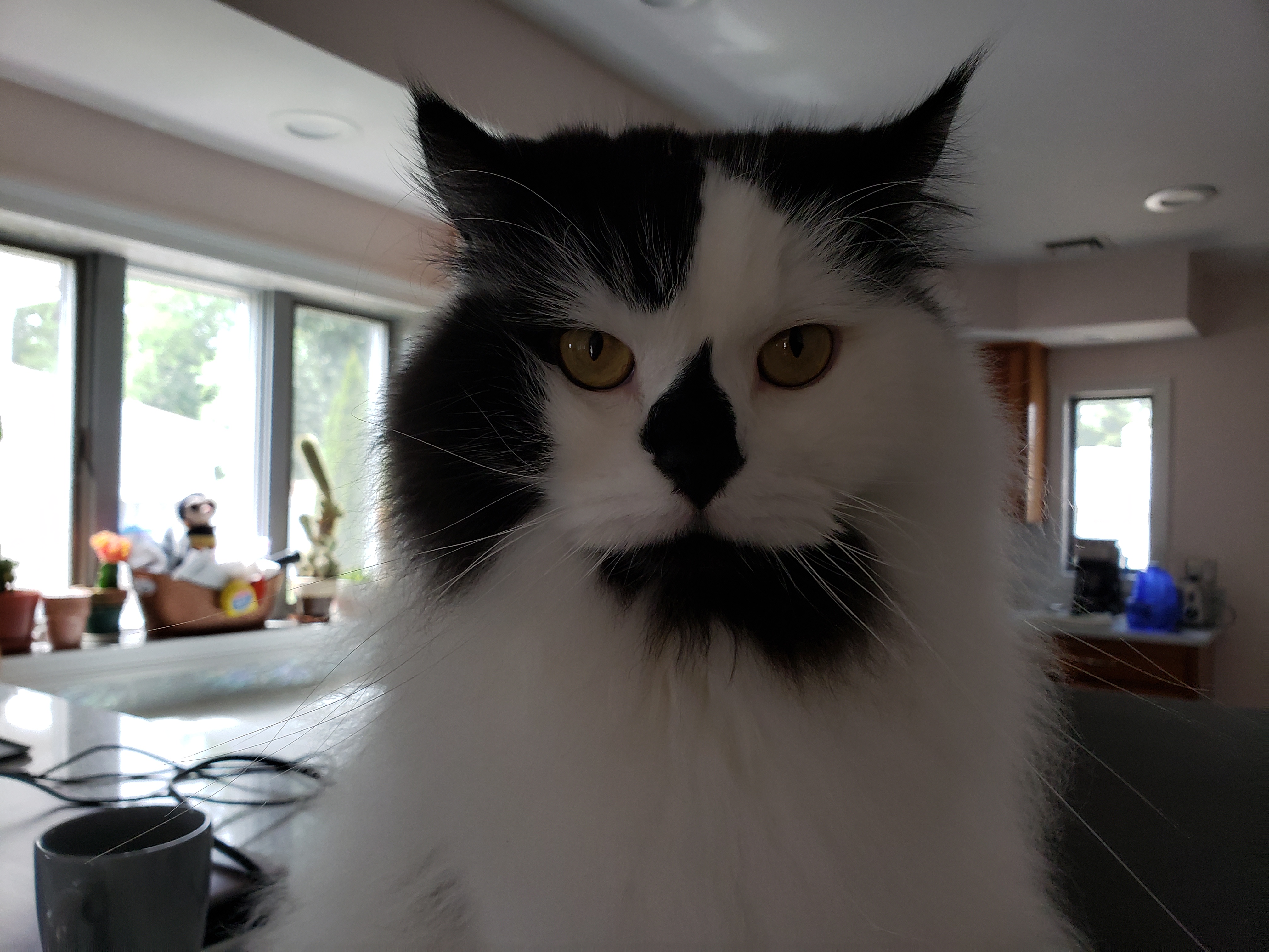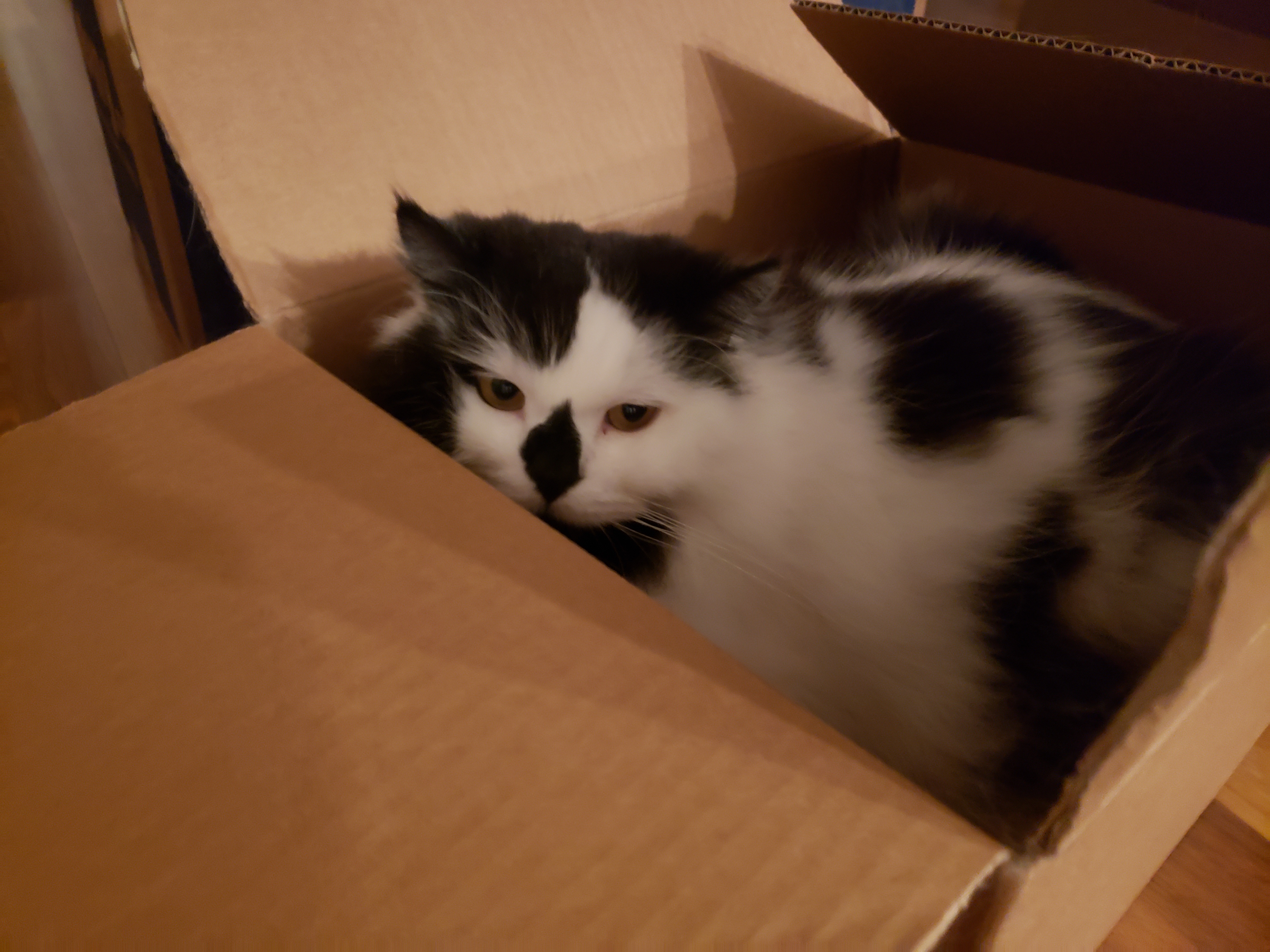 1) Dolyn (Doll-lynn) is the king of the pride. Hes White and Black, fluffy. He weighs 9 1/2 pounds. Hes very outgoing, friendly, playful and smart as can be.