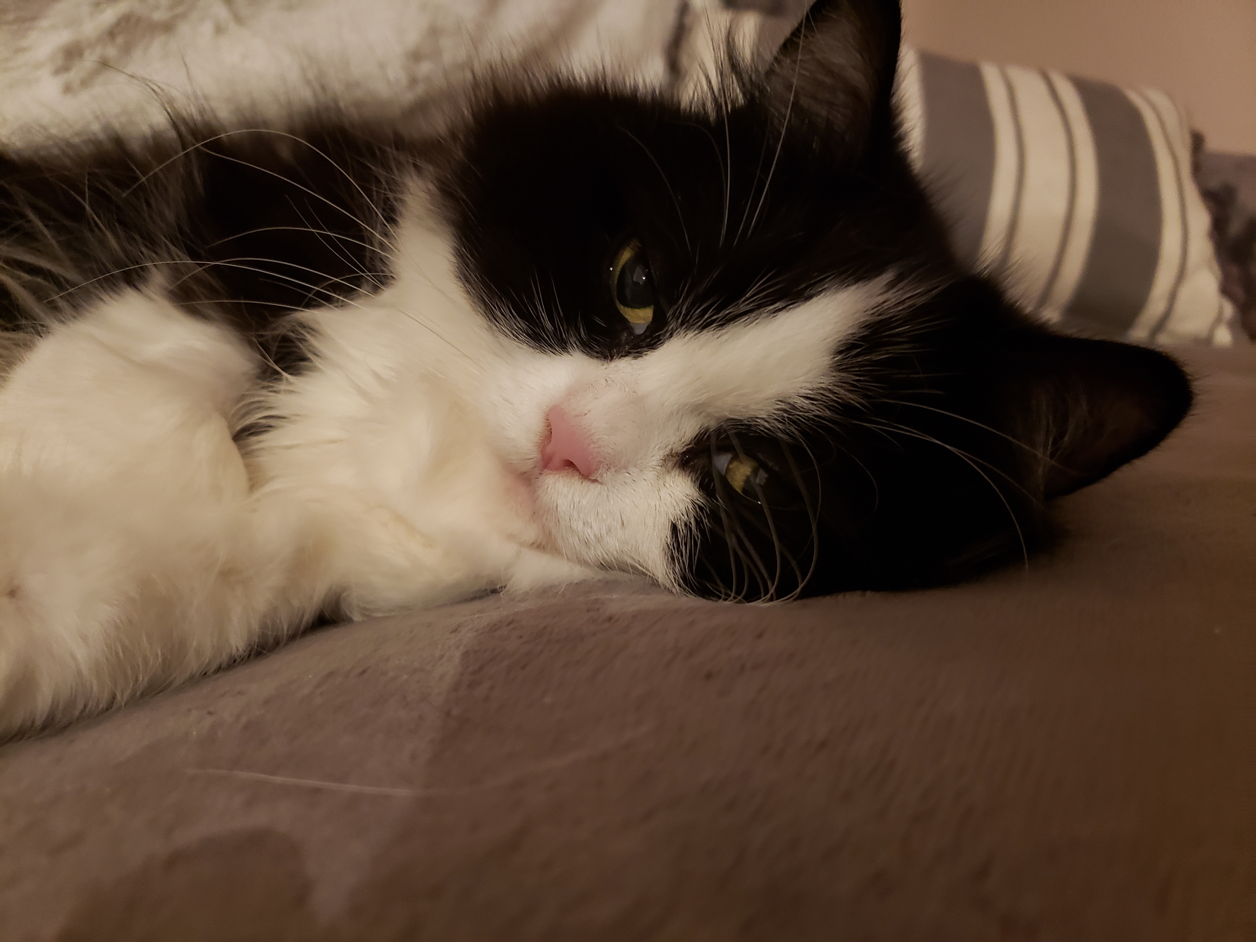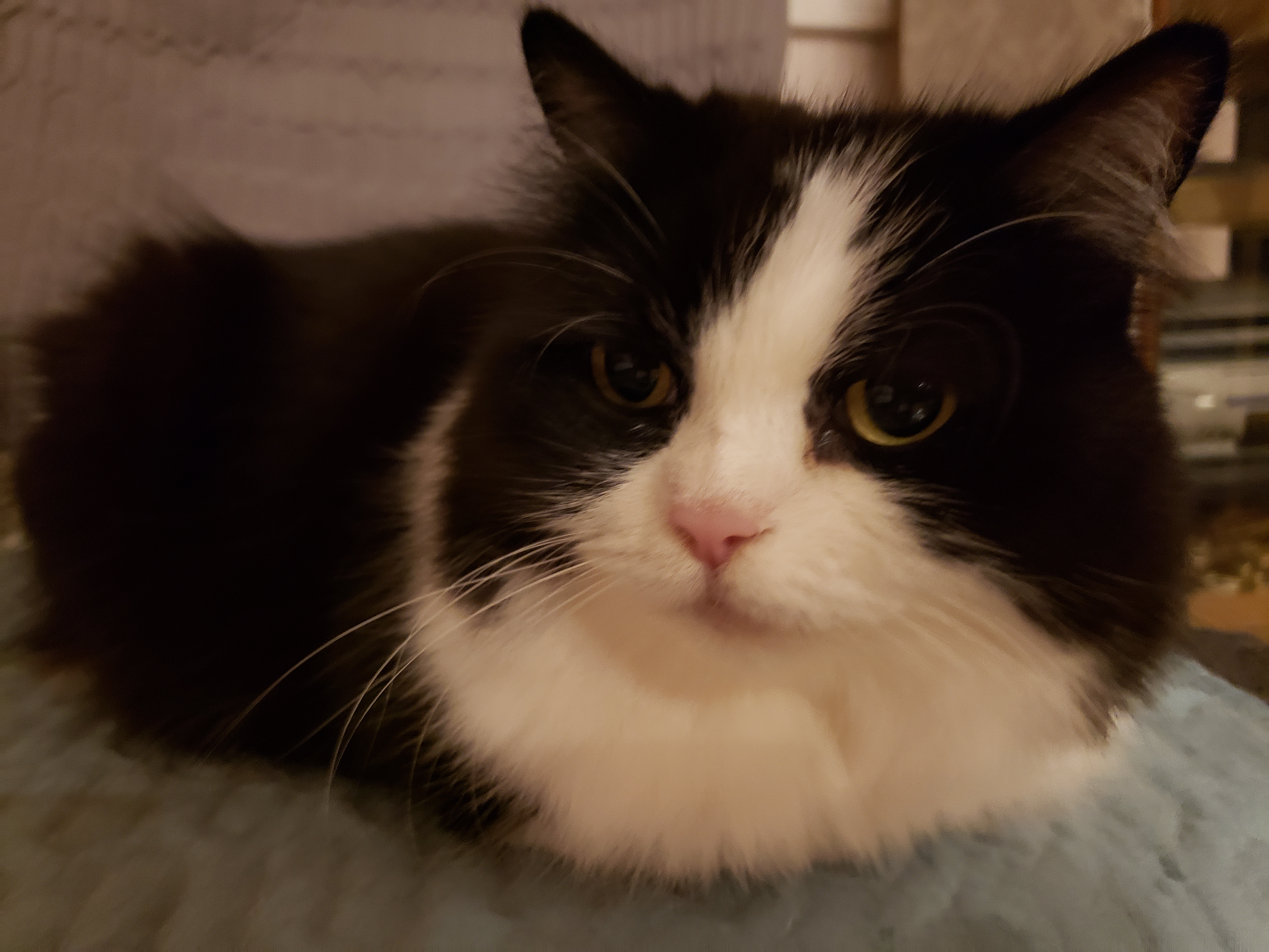 3) Macka (Mahch-ka). He is no longer with us. He was a color called "Blue Smoke" and was the most loving and gentle animal I have ever encountered. He was very playful. He weighed about10 pounds and had a giant teddy bear head on a kitties body. His death has left a hole in my life that will never be filled. I have never taken a loved ones death this hard.