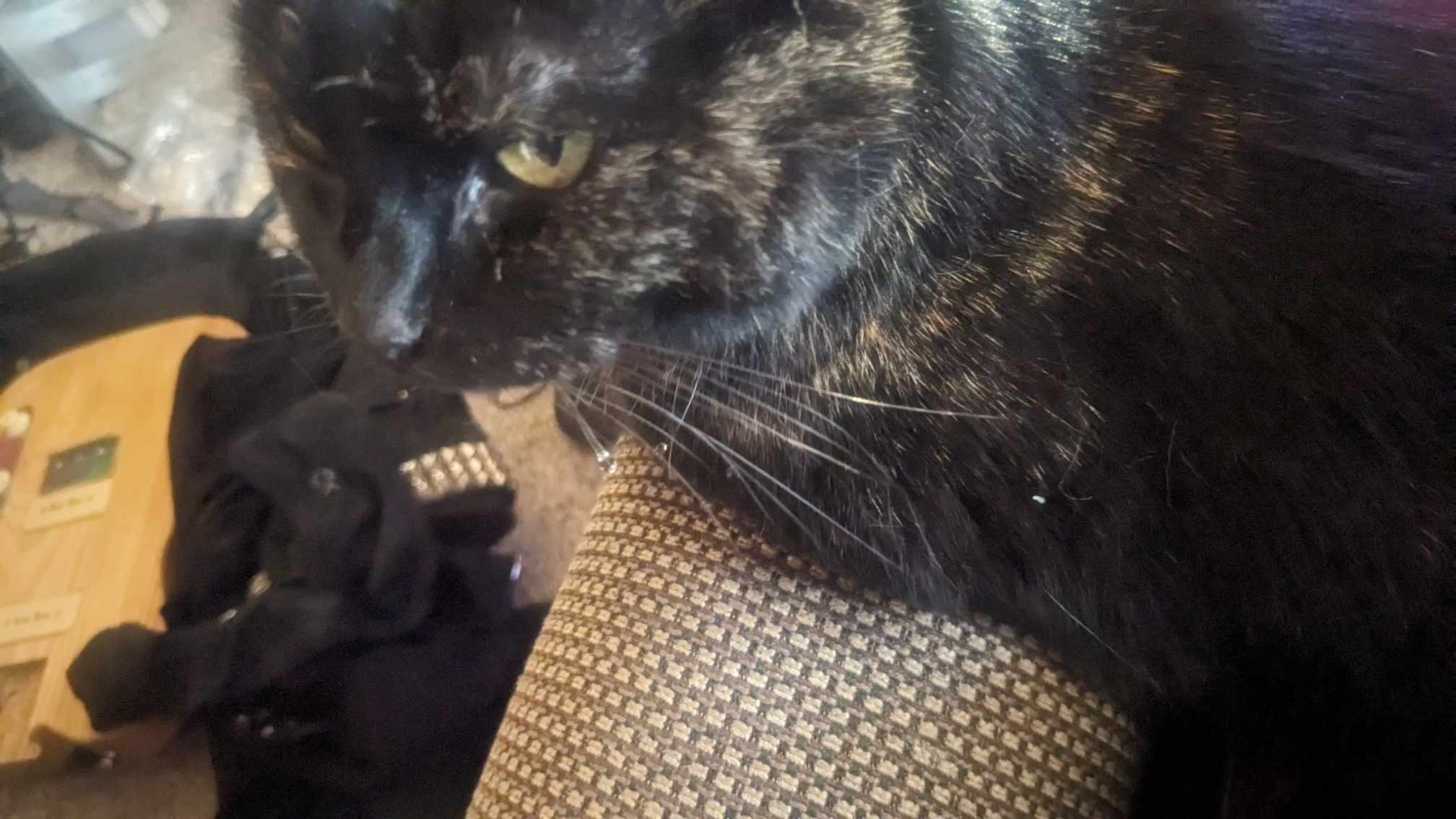 2) Aalin (Aye-lynn) who is tiny, cute and very proceedural. She weighs 7 1/2 pounds. She is a one person kitty. She doesnt come to anyone else but me and I am the only one who can groom her. When I am out of town she will get in the playpen for my wife when need be and that's about it.