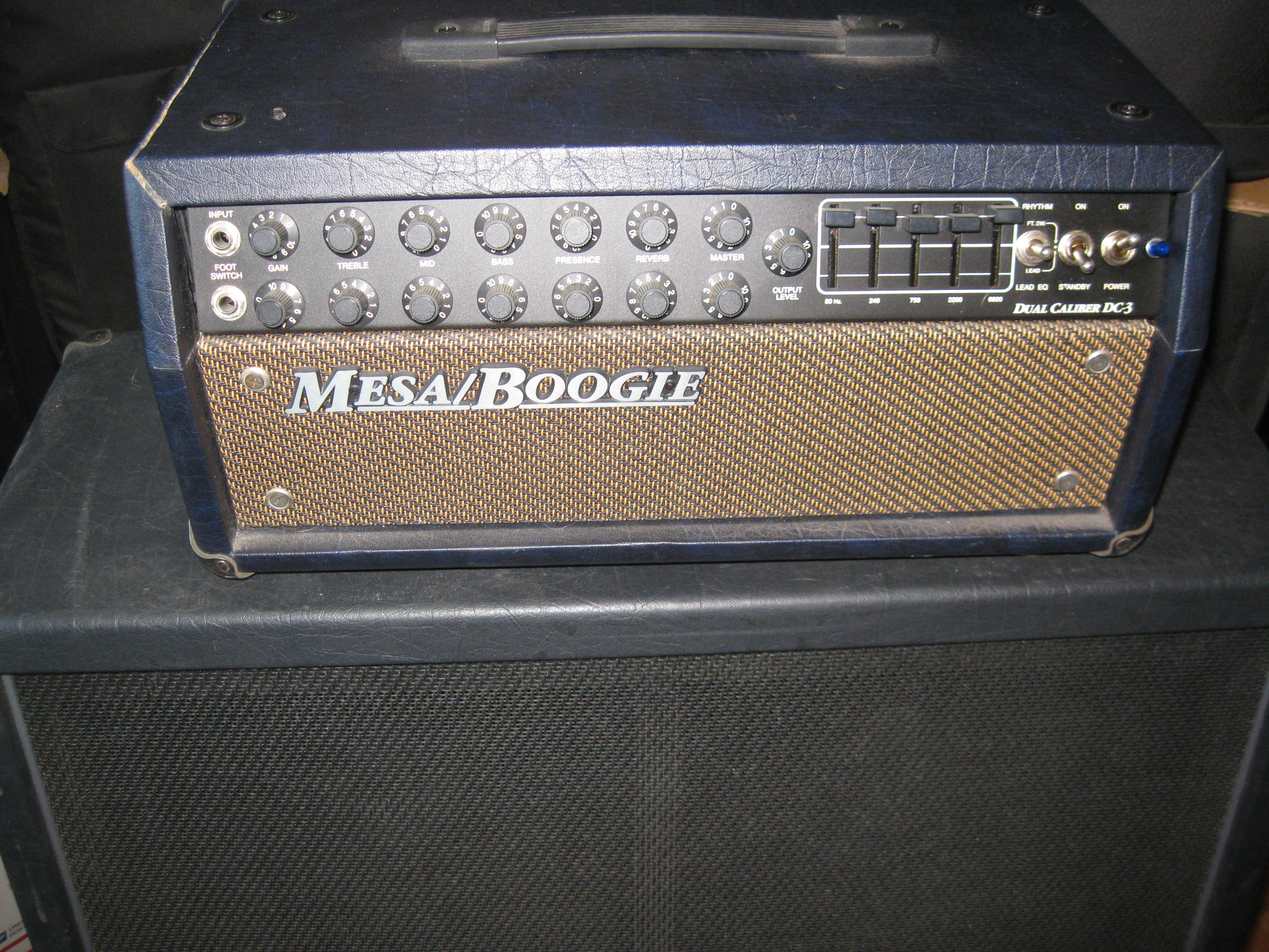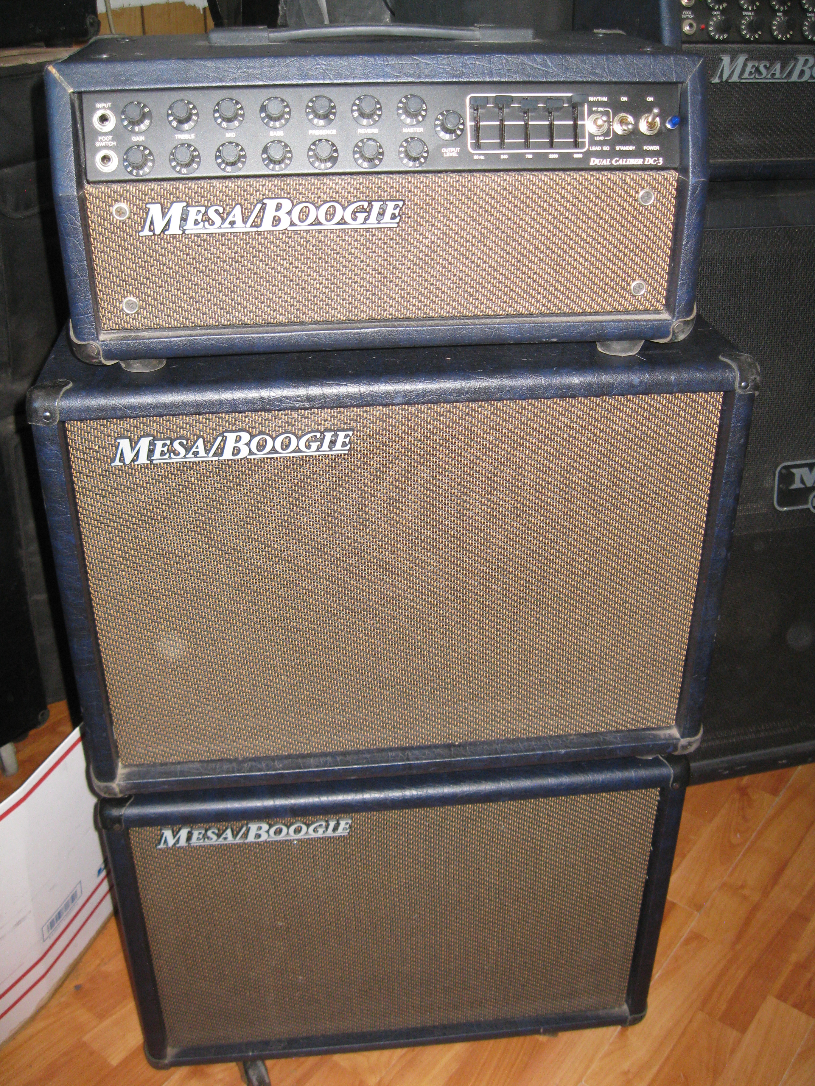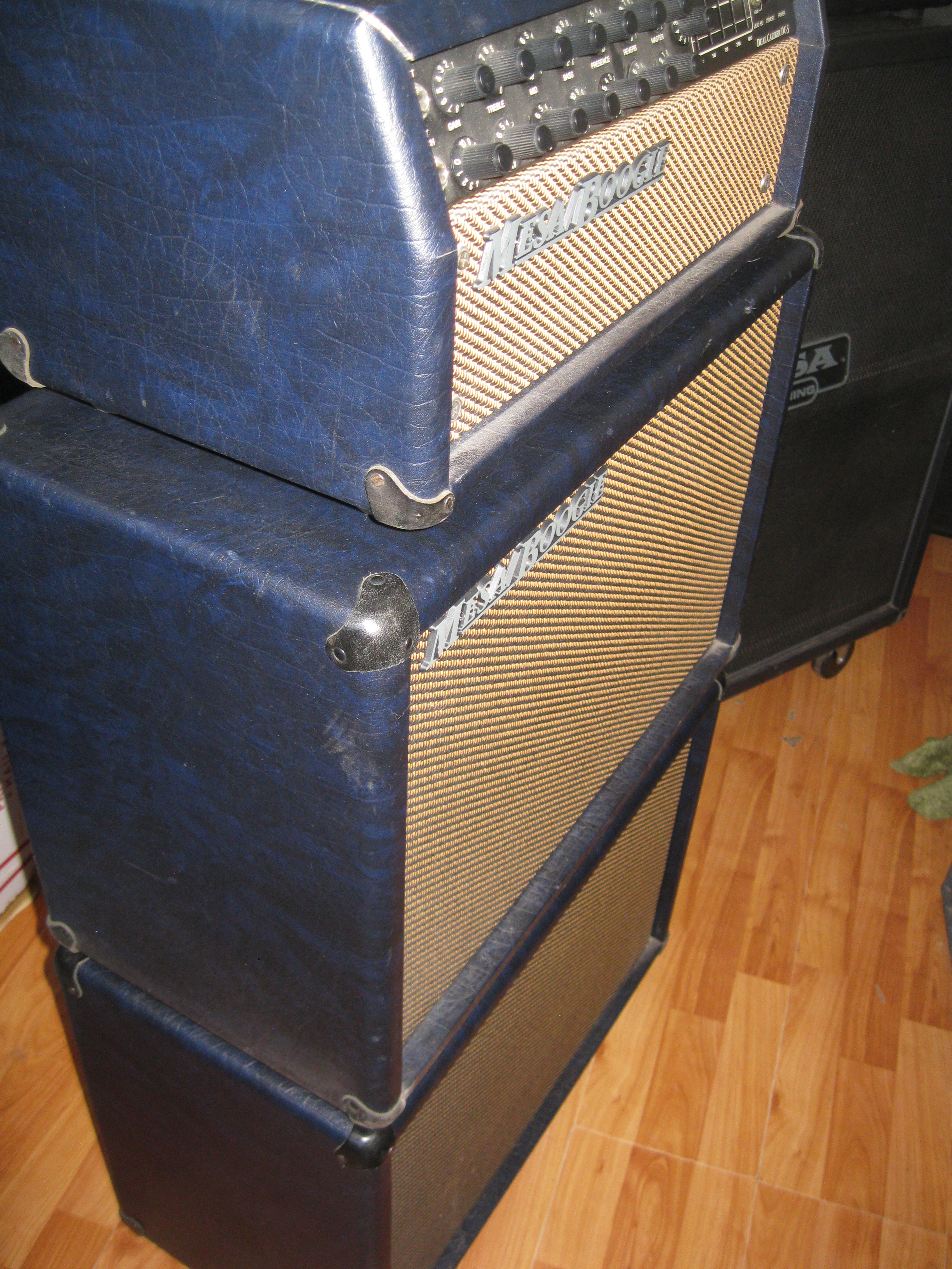 I was lucky enough to find a DC-3 "full stack" blue from a seller and former gc worker in the Chicago area back in the day when you could find mesa's in the store. Yeah, yeah, I know but it's gibson that put them back in. I was unlucky enough that the head cab was treated just as you would expect a shipper to treat it and it came down with "top left crack thru the dove tail" syndrome. I later picked up a DC-5 blue head locally but it too is cracked.. If anyone has some blue head shells in a closet please let me know. Or if anyone runs a tolex business I'll take a custom roll!