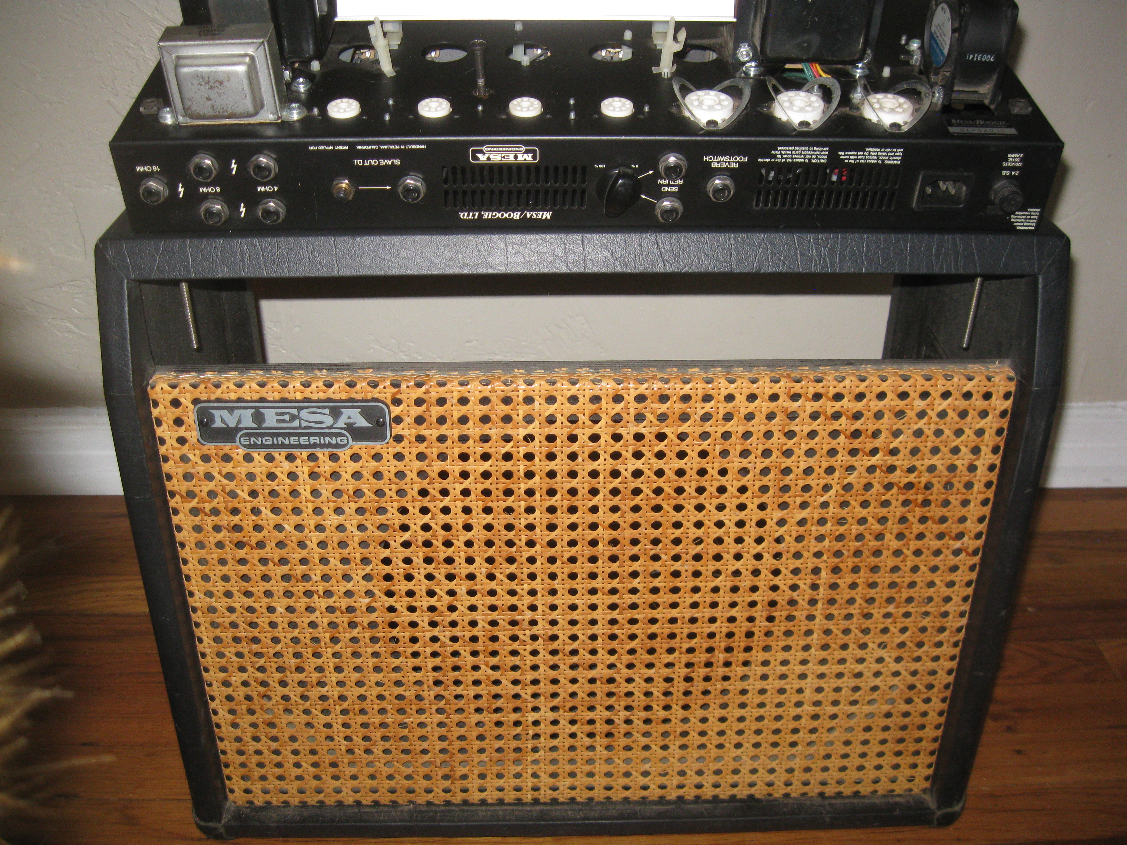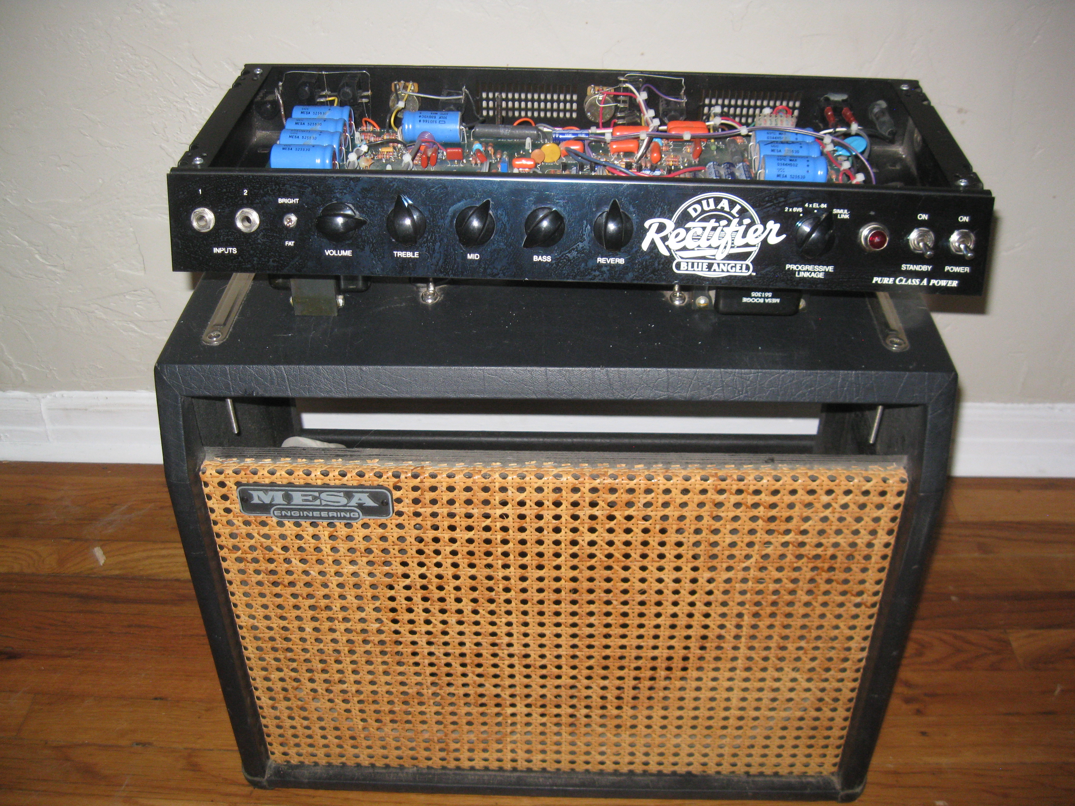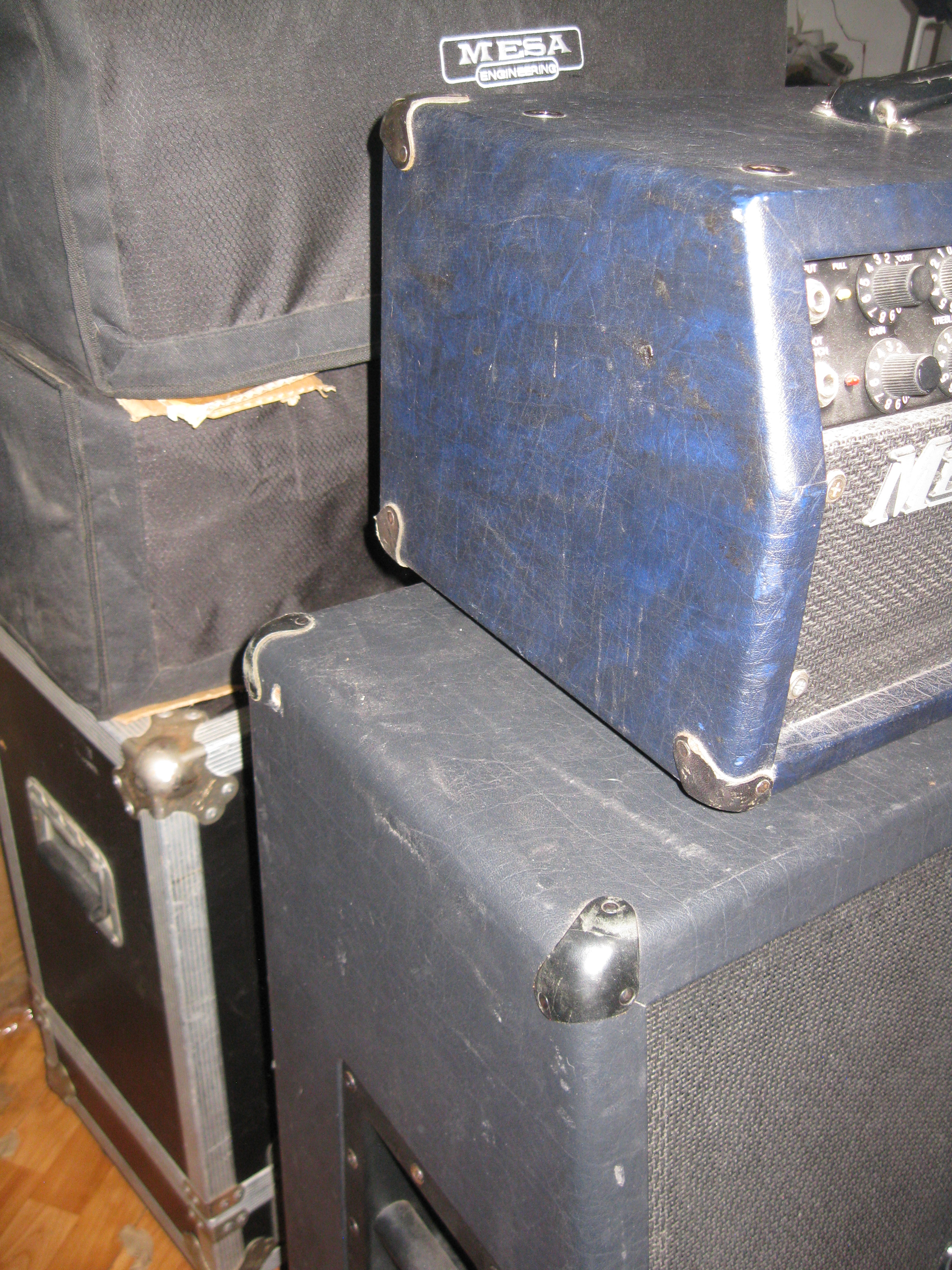 I was lucky enough to find a DC-3 "full stack" blue from a seller and former gc worker in the Chicago area back in the day when you could find mesa's in the store. Yeah, yeah, I know but it's gibson that put them back in. I was unlucky enough that the head cab was treated just as you would expect a shipper to treat it and it came down with "top left crack thru the dove tail" syndrome. I later picked up a DC-5 blue head locally but it too is cracked.. If anyone has some blue head shells in a closet please let me know. Or if anyone runs a tolex business I'll take a custom roll!