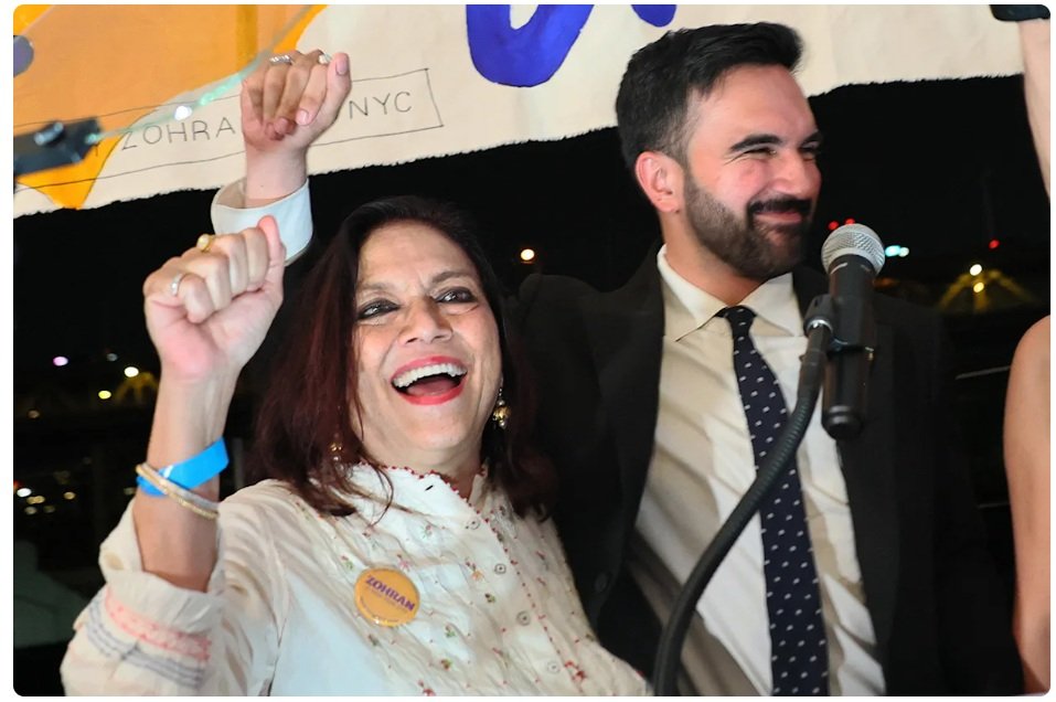 A guy who gets along great and lovesMomma Mira Nair directs Muslim manchild Zohran Mamdani around because he's a bitch. She doesn't just employ her son; looks like she still dresses him too.
