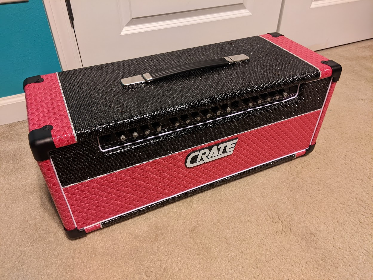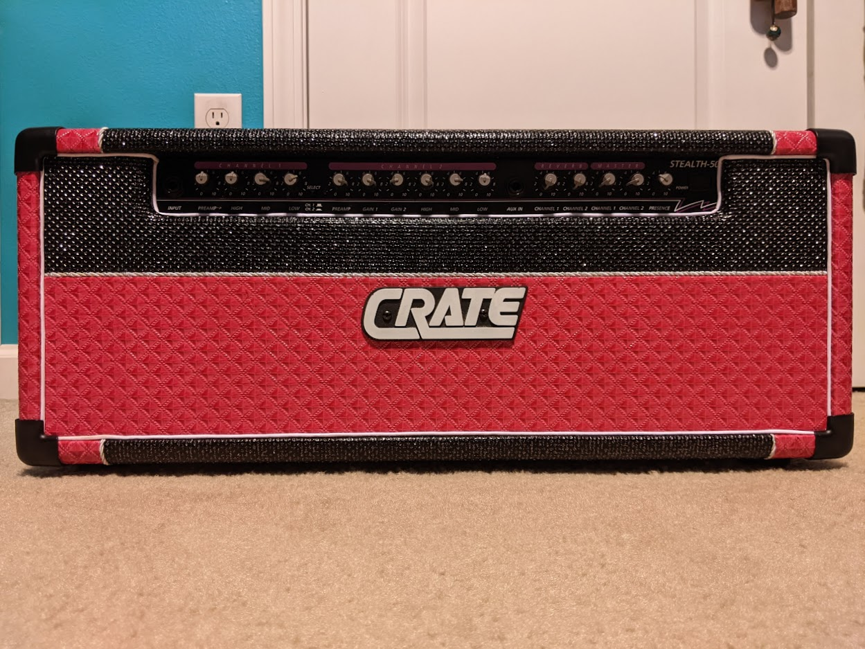 I converted my Crate Stealth combo to a head a good while ago. Being the first head shell I made there were things I could have done better. I also wanted to do something more than basic black covering. Decided to go hot pink and sparkly black with this one. I did the piping around the amp chassis too, but I'm not sure if I like it that way or not. Overall I'm happy with the way it turned out.