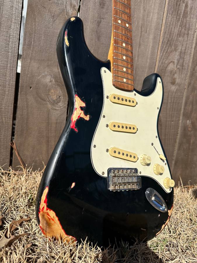 Is there something in the water these days or what? There's a dude on Craigslist selling a 1992 Mexican Strat that was already relic'ed...even though I'm sure that was looooooooooooong before relic'ing was popular (probably just crappy homemade mods over the years and scratches and dings), and then he beat it up some more at home for a real worn in look and somehow thinks it's worth $800? There's obvious abrupt paint wear from where he sanded it and didn't really blend it by spreading it out or anything, so it's just scratched up black then POW, wood underneath with a lil bit of factory red paint showing.