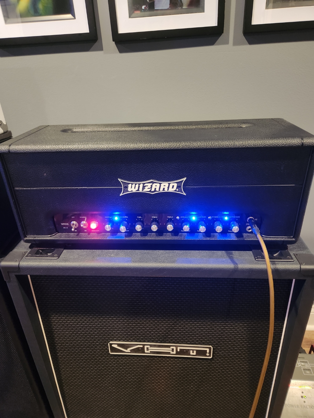 Wizard Amplification MC II EL34 100 Guitar Amplifier 2020 Has all the latest factory mods including the hidden Pull boost feature on the rhythm channel ... Black Cat mod I believe it's called.