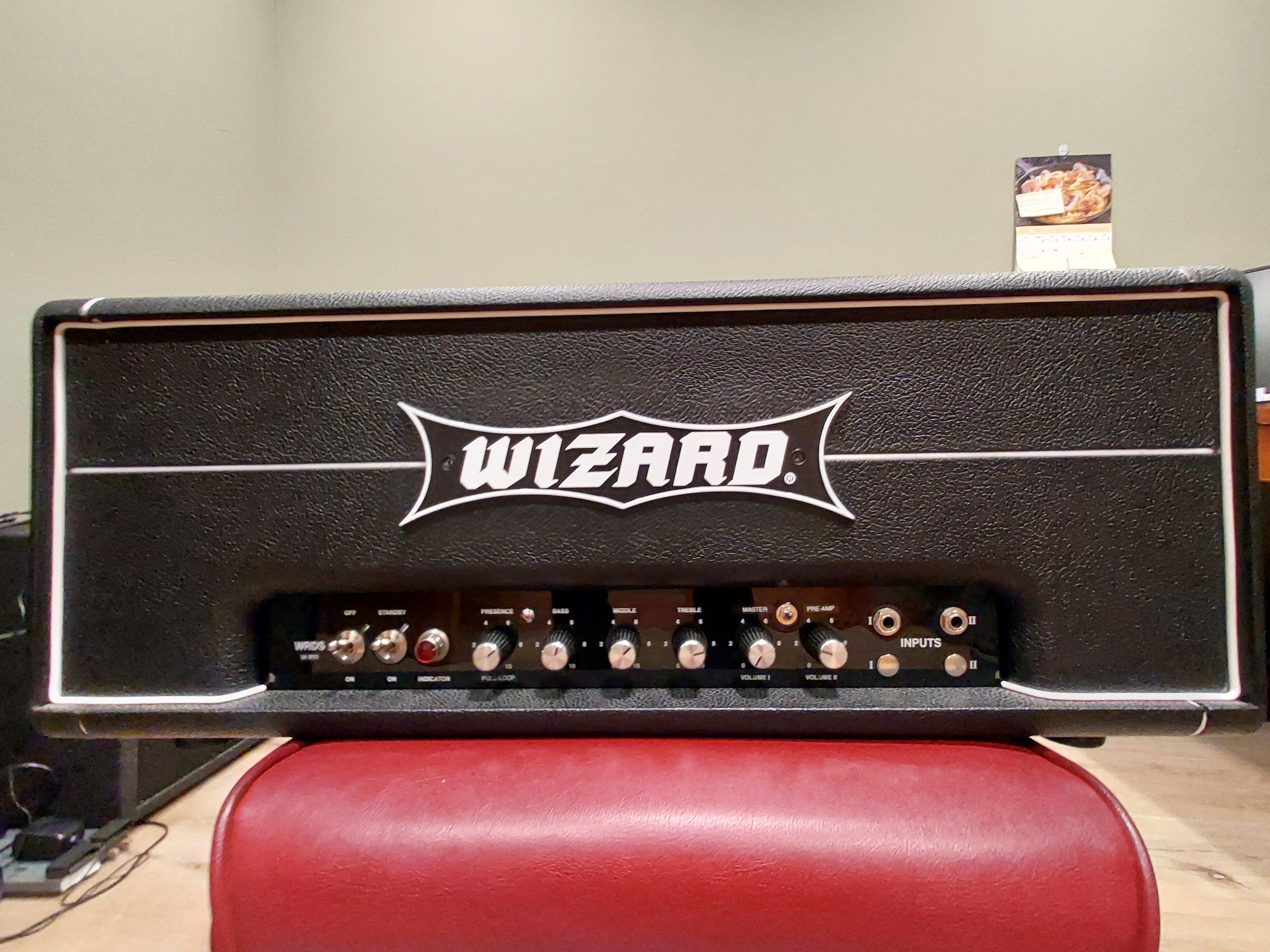 2020 pre-production 100W Wizard W800. Recently serviced and gone through by Brian Carstens of Carstens Amps. He retubed it with JJ EL34 and gave it a clean bill of health. Things of note for full disclosure: Pre-production model so built into a VC chassis. Top of headshell tolex has minor foot marks from amp sitting on top. Power tube pins are slightly loose in the sockets; has zero bearing on operation and zero affect on reliability/function. This is just how some of Rick's builds are and I've had three Wizards now that were this way. The tubes are not loose by any means in the pins, just the pins move a tiny bit in the socket; it's just the sockets he used.