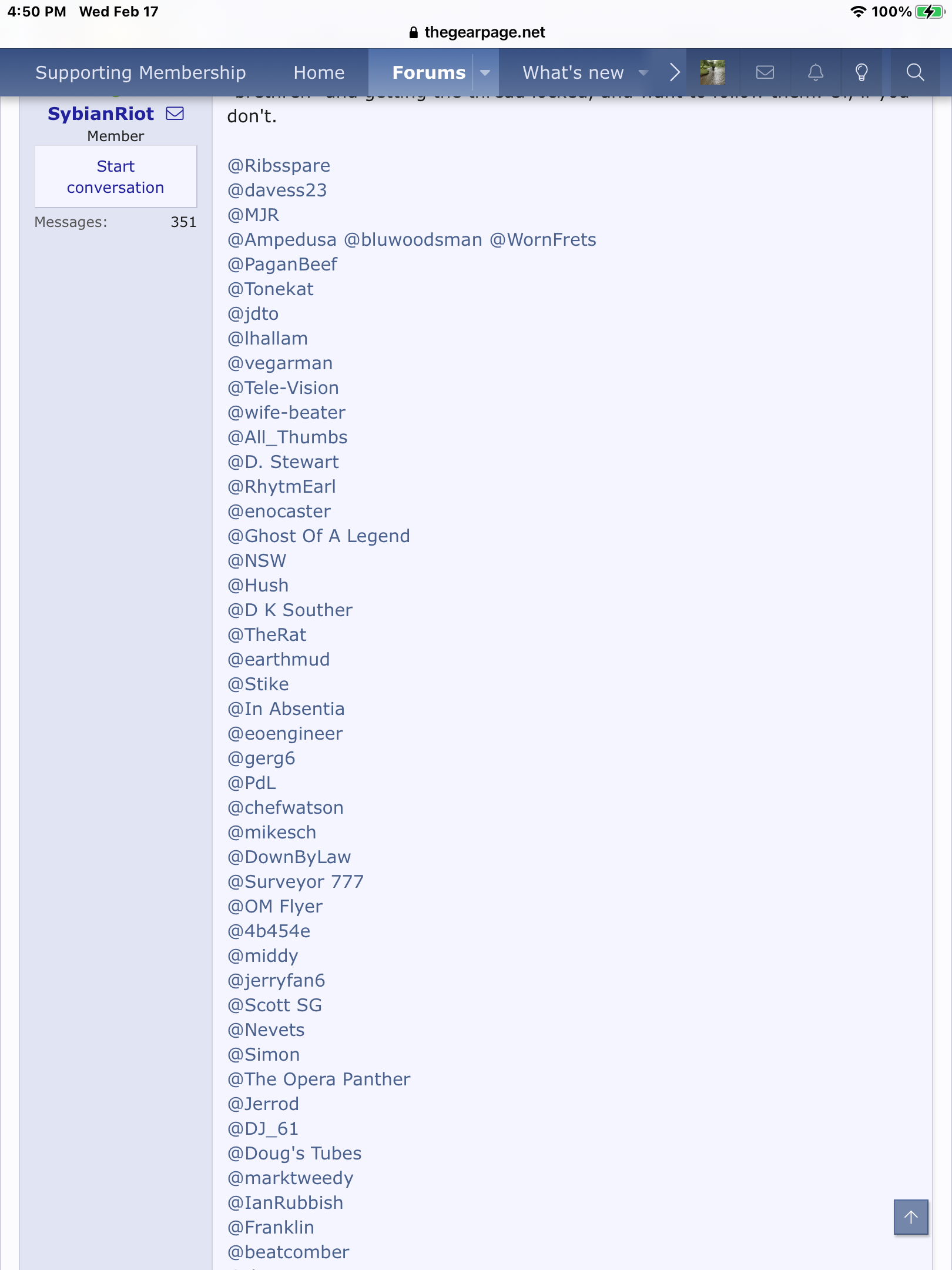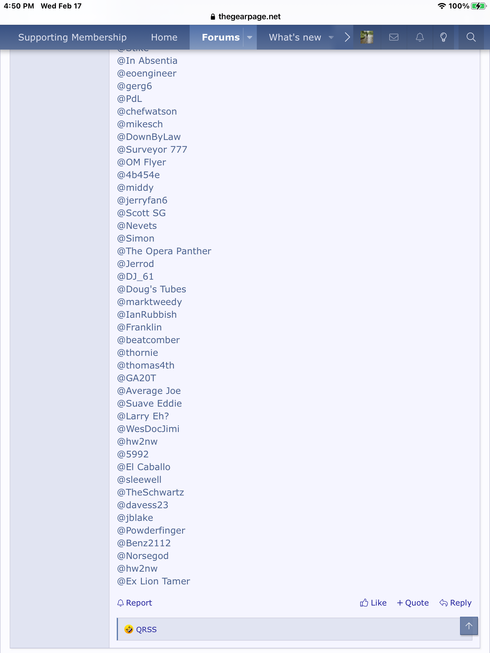 Since you’ve taken such interest, I was banned for writing something word for word that someone else posted previously. I made additional names over the past 20 years as I saw stuff I wanted to buy, but couldn’t remember a previous user name.You have 5 user names? And what did you do to get yourself banned? C'mon and spill the beans to us all. I think that this is a sign you spend way too much time on music gear forums when someone online says...............and you reply.