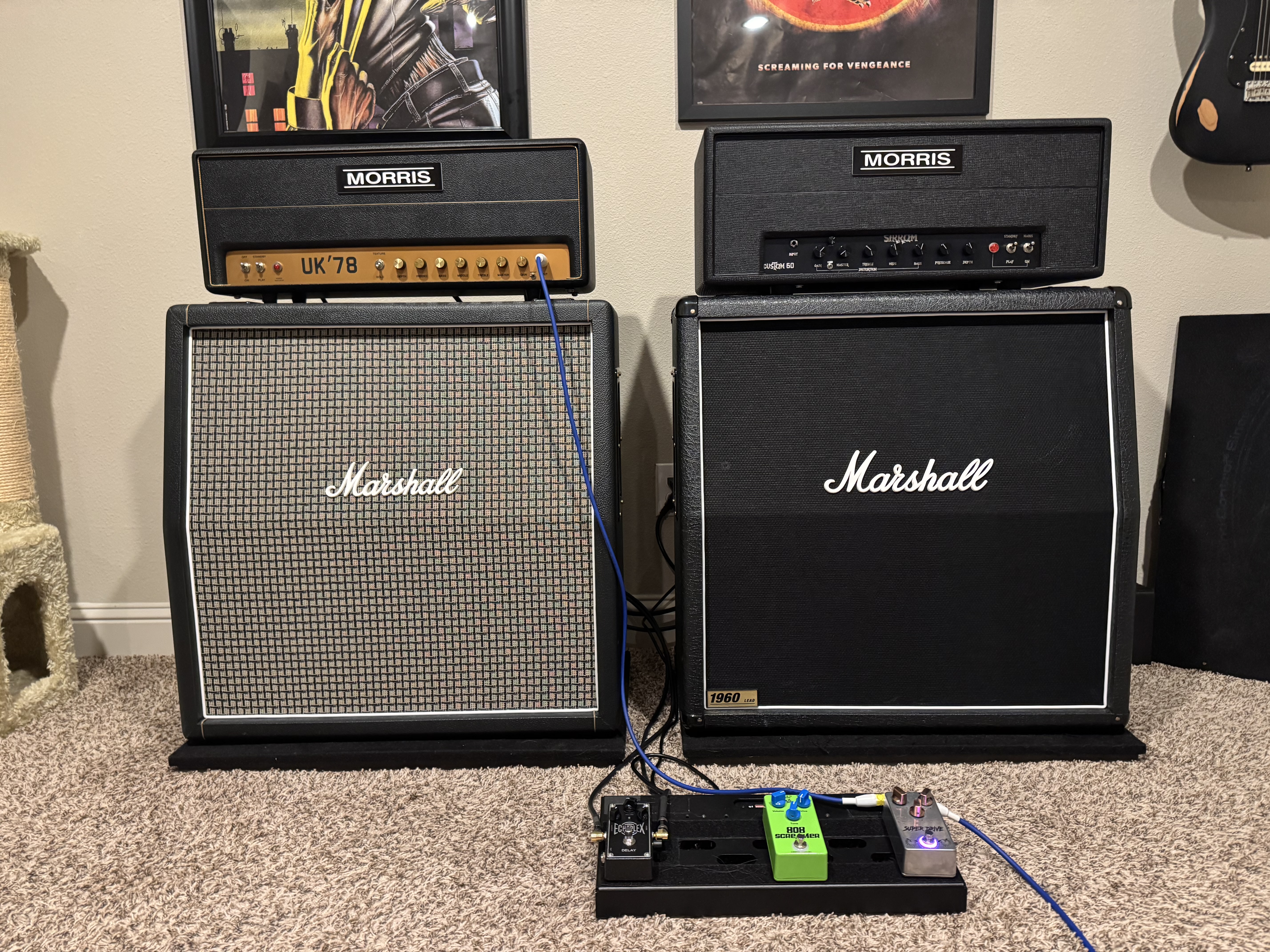 Had a couple 8 ohm Heritage G12-65’s laying around and an empty 1960A I just refurbished. I popped the two 65’s in diagonally and left two holes open and it sounds phenomenal.