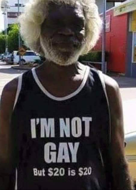 It never ceases to amaze me what people will do for money..................that's all. It's a pic of an Australian aboriginal I believe?Yabba , I see you posted a "Wow" emoji under the dude who says he's not gay but $20.00 is $20.00 . Just curious about that , did you post "Wow" because you think it's a good deal or did you post "Wow" because you're surprised to see somebody advertising their services out in public like that ?