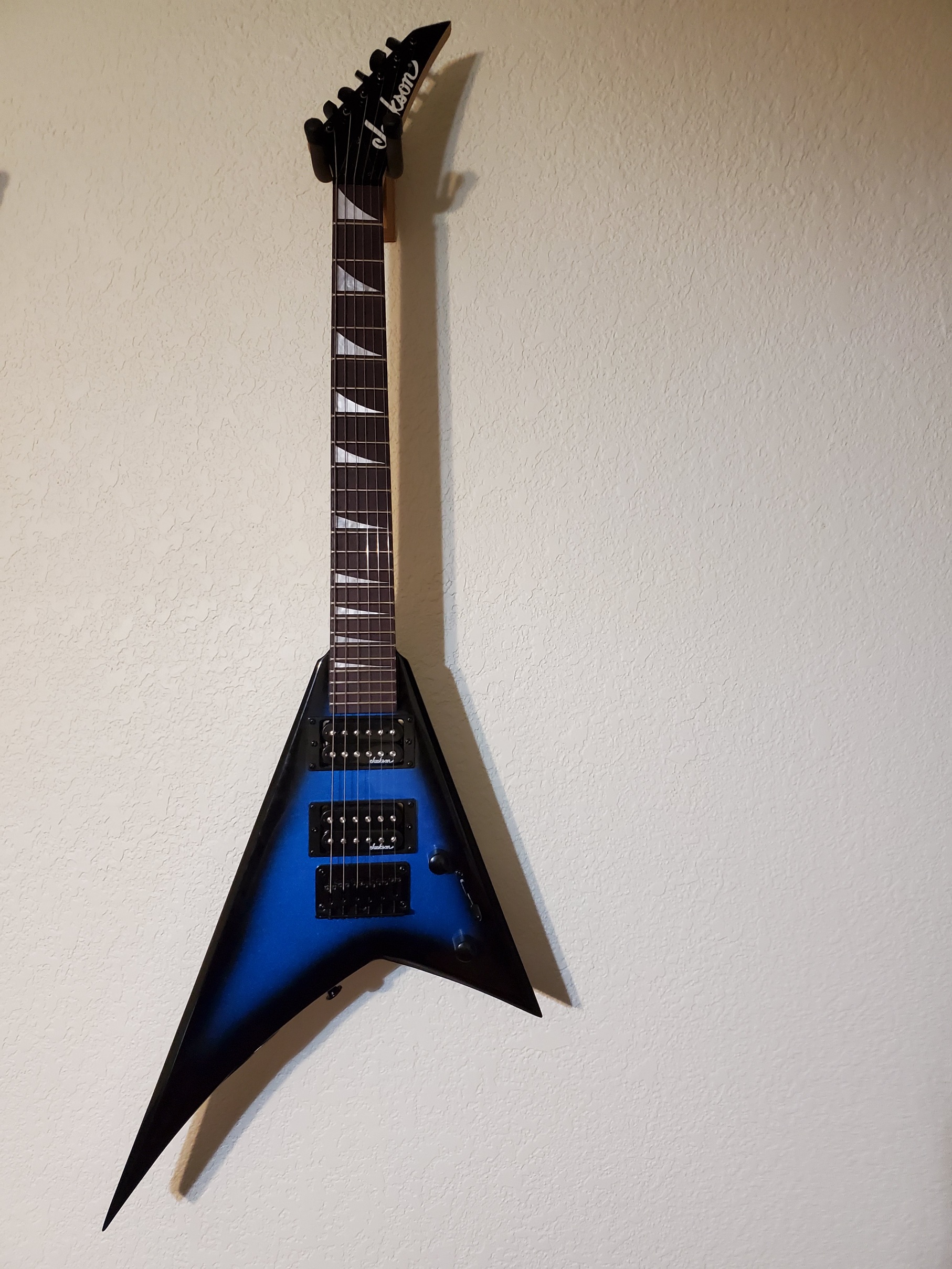 Bought my son a 140$ mini v from Jackson. So this morning I decided to see what it sounded like vs my other guitars. Thing is noisy as fuck, but actually has a pretty decent tone. Also, is anyone else irritated about the antiquated system they use for uploading on this site? Fucking ridiculous how long it takes me to resize images to work. I actually sometimes give up on posts because I don't want to waste that much time...