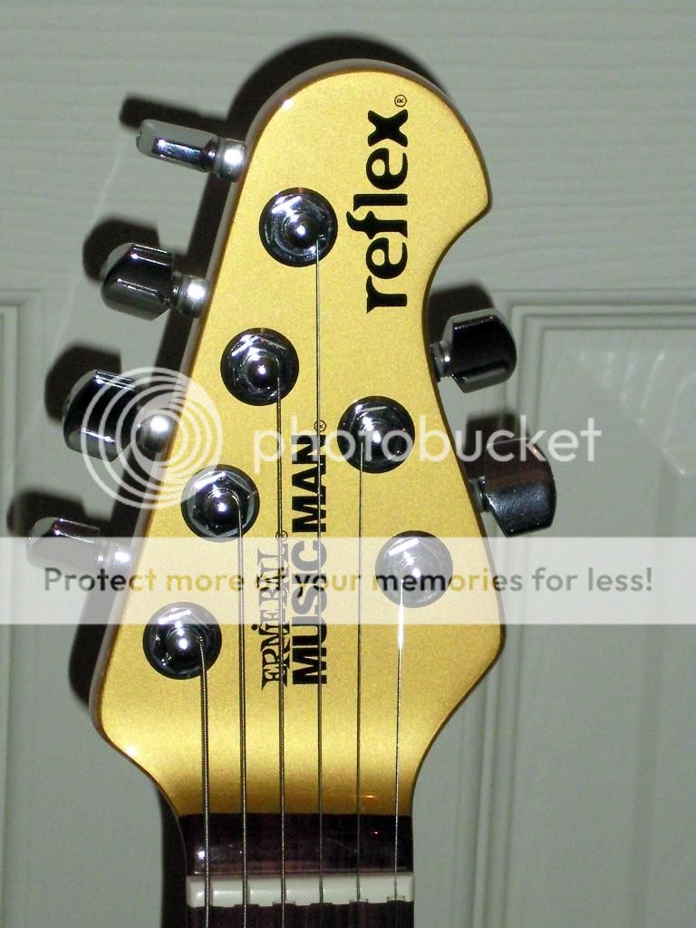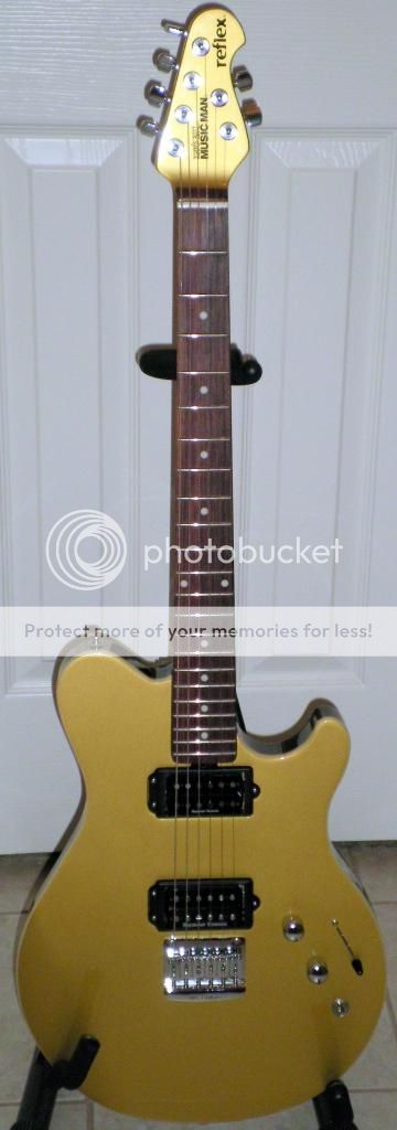 This particular Reflex is somewhat unique due to the fact that it's the only (regular) Reflex that i've ever seen that came with a Birdseye Maple neck. It was shipped in the original box it came in and has a "EBMM EMPLOYEE GUITAR" sticker on it, which is the reason it came with the neck...as the employee was able to order it that way...or so I've been told. Also, the original owner replaced the bent saddles for solid, which I was alright with. Again, I was on the fence about purchasing this particular guitar as well, just because I'm not really into chambered bodies. But, it seemed like a great buy at $1K shipped so I gave in. When it arrived, it was in excellent shape for a 2010, with no wear to speak of....a total case queen. First thing I noticed was how great of a neck it had....probably the best feeling Music Man neck I've ever played, and I've had a couple. It's got more meat than any other Music Man neck that I know of, but not overly fat...very comfortable. I also liked the bigger body in contrast to the similarly shaped Axis. It didn't take long for me to realize that the wimpy DiMarizo's were going to have to go. They weren't horrible, but just lacked balls. So, I replaced them with some Duncans....SH-14 Custom 5 in the bridge and SH-3 Stag Mag in the neck....HUGE IMPROVEMENT! This thing fucking slays! It's probably the best Music Man model that I've ever played...definitely my favorite.